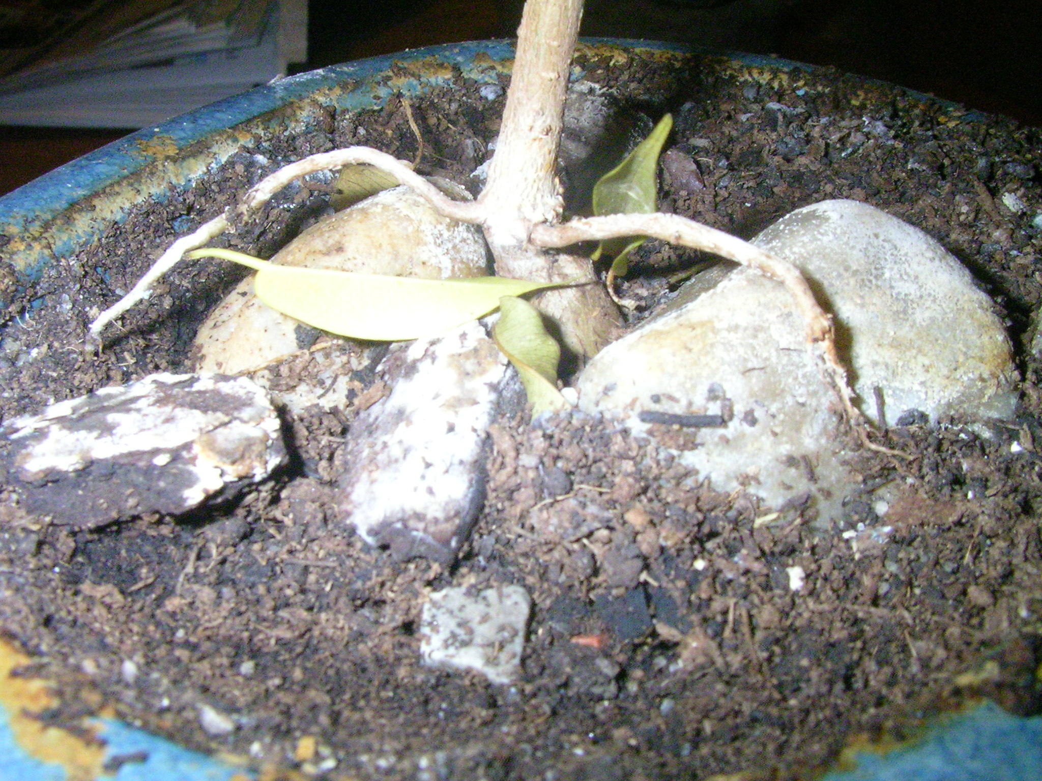 Durch das Befestigen und Versenken der Wurzel am Stein wird diese dann um den Stein herum wachsen. Wenn du dann mit deinen Baum zufrieden bist, der Stamm dick genug ist, und du ihn in die Schale pflanzen willst, dann versenkst du den Stein nicht mehr komplett, sonder er wird aus der Schale herausragen, und die Wurzeln werden sich dann sichtbar um ihn gelegt haben