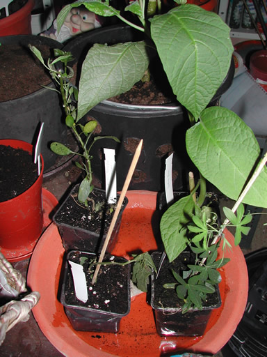 Beim 2. Aldi hab ich dann auch noch alles gefunden was ich gesucht habe, na ja also eigentlich wollte ich ja nur die Bougainvillea haben, aber die Passi, die Datura und die Melonenbirne haben mich auch so mitleidig angeschaut, wobei die Bougainvillea (unten links auf dem Bild) doch sehr schlecht aussieht. Allerdings immernoch besser als die anderen beiden die noch da standen. Jetzt hoffe ich aufs ST.
