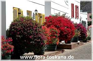 Info: mediterrane Klassiker mit leuchtenden Blütenständen; Dauerblüher durch mehrere Blütensätze pro Jahr; als Kletterpflanze, Strauch oder Stämmchen erziehbar