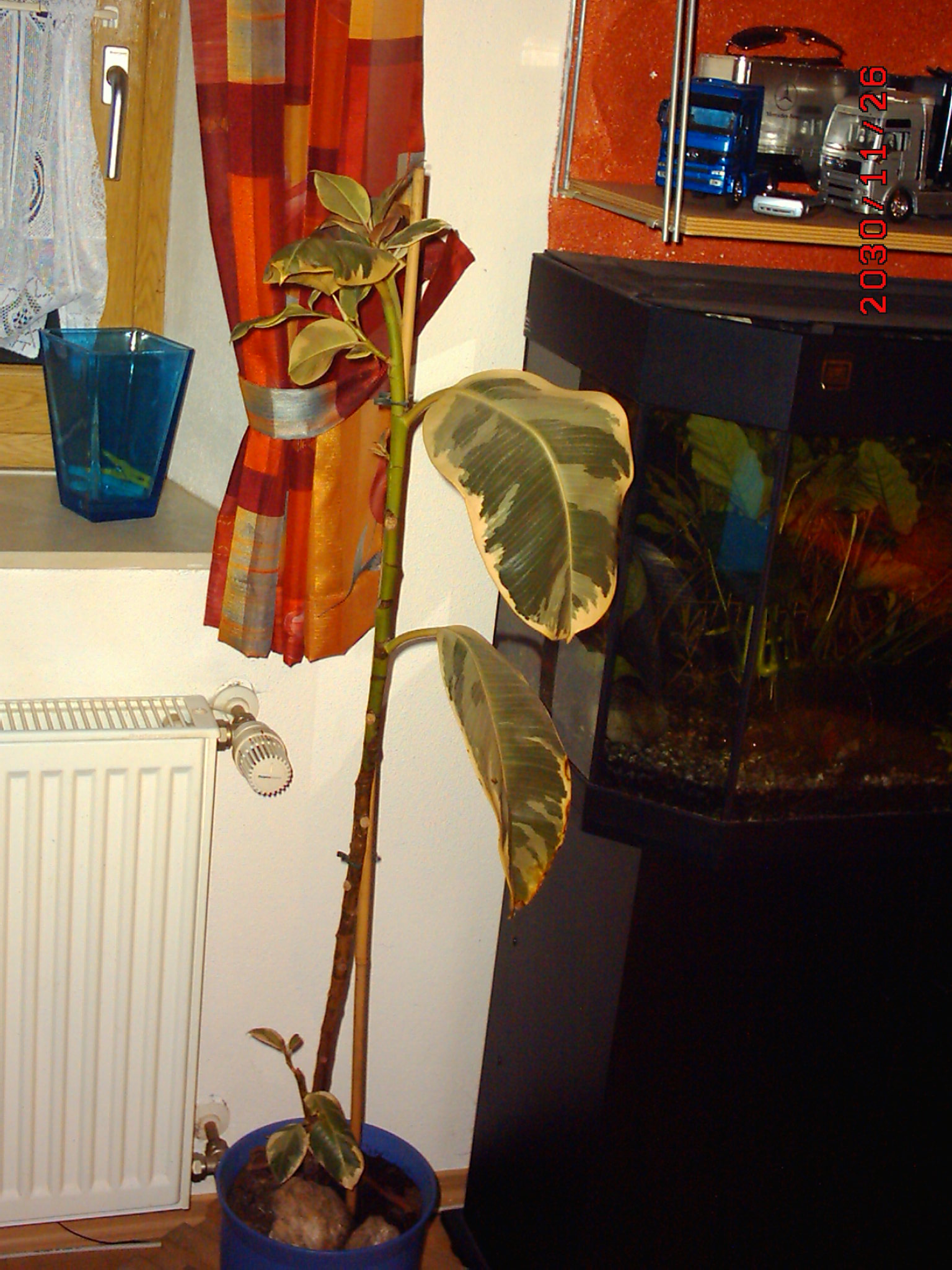 Mein erster Gedanke war : Das ist ein Gummibaum ! Aber nachdem meine Freundin meinte, dass die Blätter sehr dünn sind und sich auch biegen lassen, ohne zu brechen, kam ich ins Grübeln , denn Gummibaumblätter sind doch sehr hart und fest und lassen sich nicht biegen !