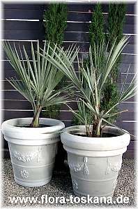 Info: blaugraue bis silberfarbene Wedel; ein- und dickstämmig; sehr langsamwüchsig; hitze- und kältetolerant; pflegeleicht