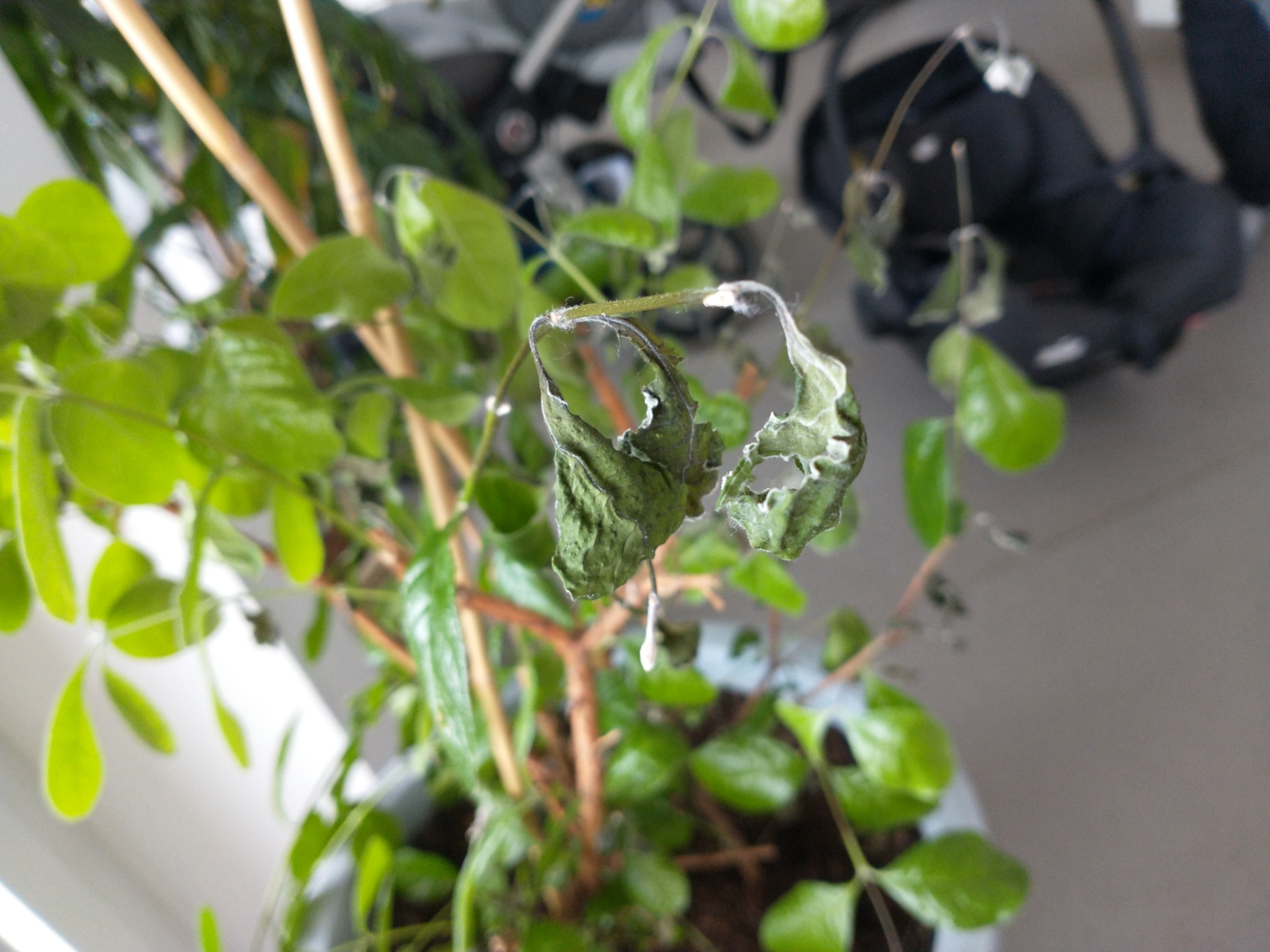 Sie hat dann vor ca. 8 Wochen prächtig wieder ausgetrieben aber jetzt sterben langsam die Blätter und Äste ab, werden dunkel, rollen sich ein wie auf den Fotos.