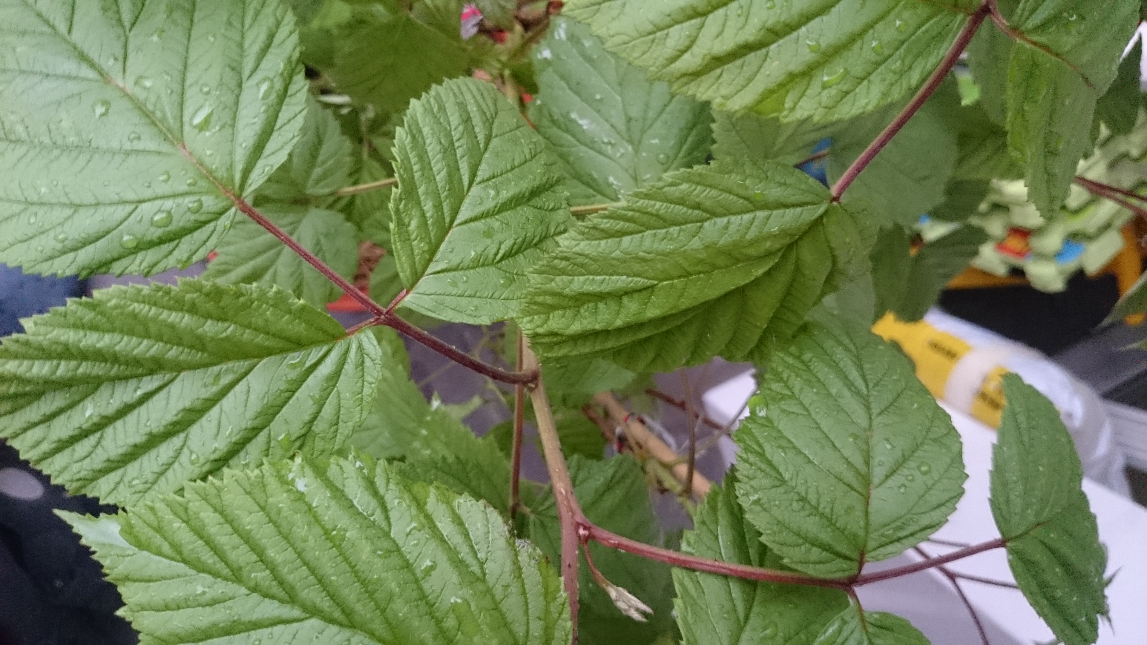 2. bei der Himbeere ist mir grad aufgefallen, dass die Ruten eine durchgehend lilafarbene Färbung haben. Allerdings nicht so, wie die Ruten auf den Bildern der Rutenkrankheit, sondern wirklich ein schönes sattes violett und meist bei den neueren Trieben. Unten ist die Himbeere braun, oben eben grün bzw violett.
