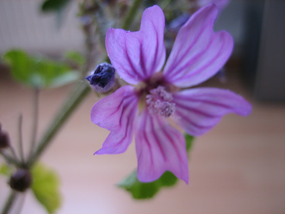 Die lila Blume ist kniehoch und wuchs auf einem Grünstreifen in der Stadt.