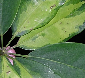 Meine Schefflera, etwa einen Meter hoch, Südfenster zeigt, besonders in den oberen Blättern kleine, braune, aufgeworfene Flecken. Was mache ich falsch? Bisher schien die Pflanze mit Standort und Pflege ganz zufrieden zu sein. Zu viel Sonne? Oder Viecher?