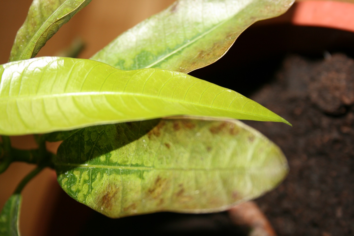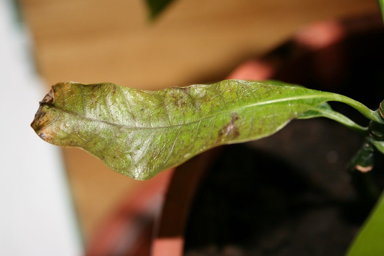 Also mein Problem ist folgendes, seid drei oder vier Tagen bekommt meine Mango braune flecken an den Blättern,diese werden dann zu größeren betroffenen Stellen bis sich schlussendlich das Blatt beginnt zu wellen und immer mehr auszutrocken...