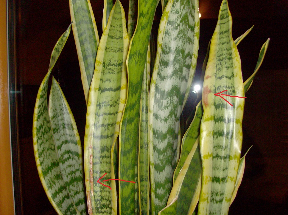 meine prachtexemplar von sanseveria hat leider zwei braune stellen bekommen.