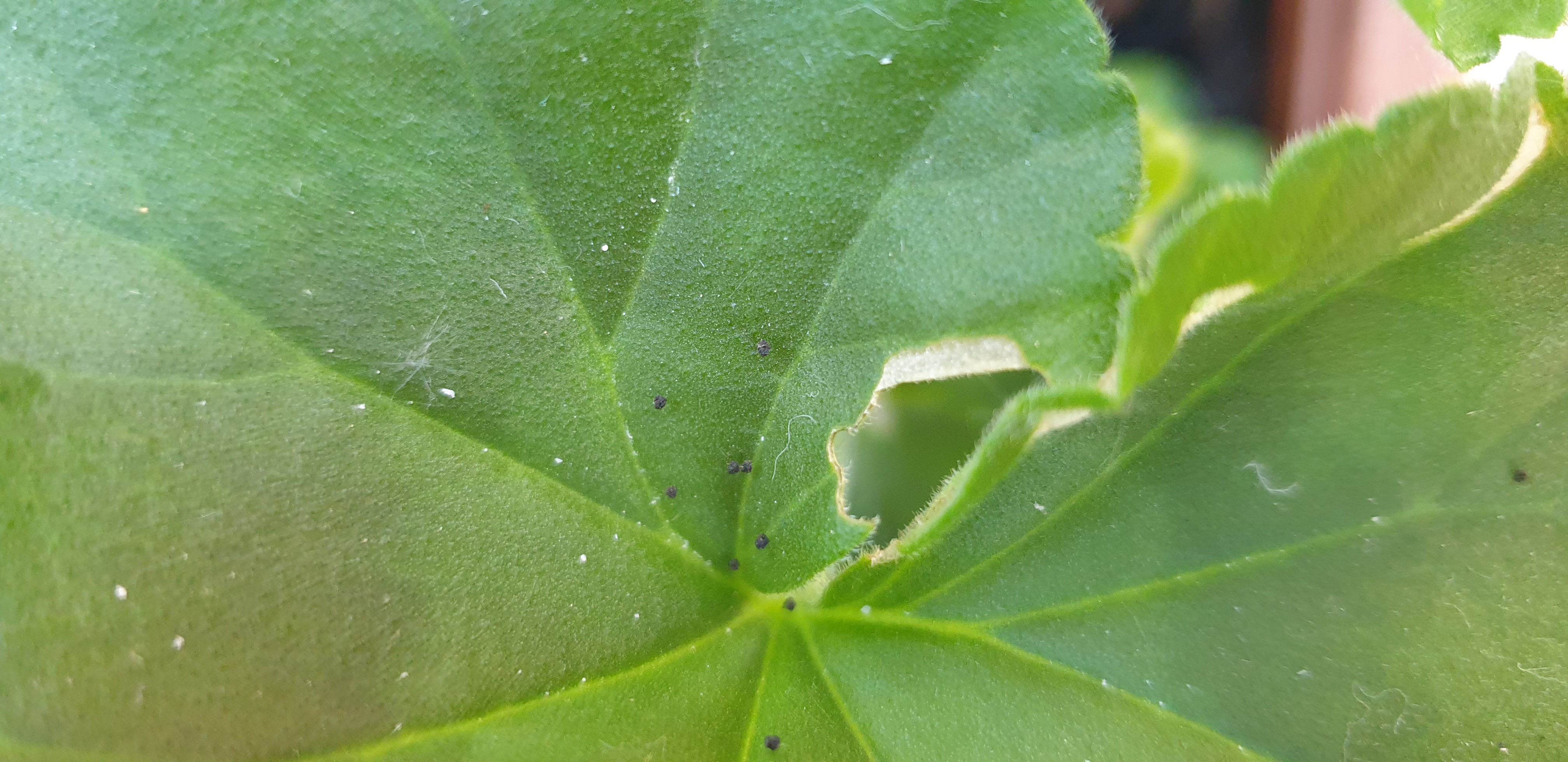 meine Geranien haben braune Stellen an den Blättern die ganz dünn sind. Nach einiger Zeit werden diese Stelln zu Löchern. Außerdem sind auf den Blättern kleine schwarze Punkte. Eventuell Hinterlassenschaften von einem Schädling? Aber was für ein Schädlibg ist das und was kann ich dagegen tun?