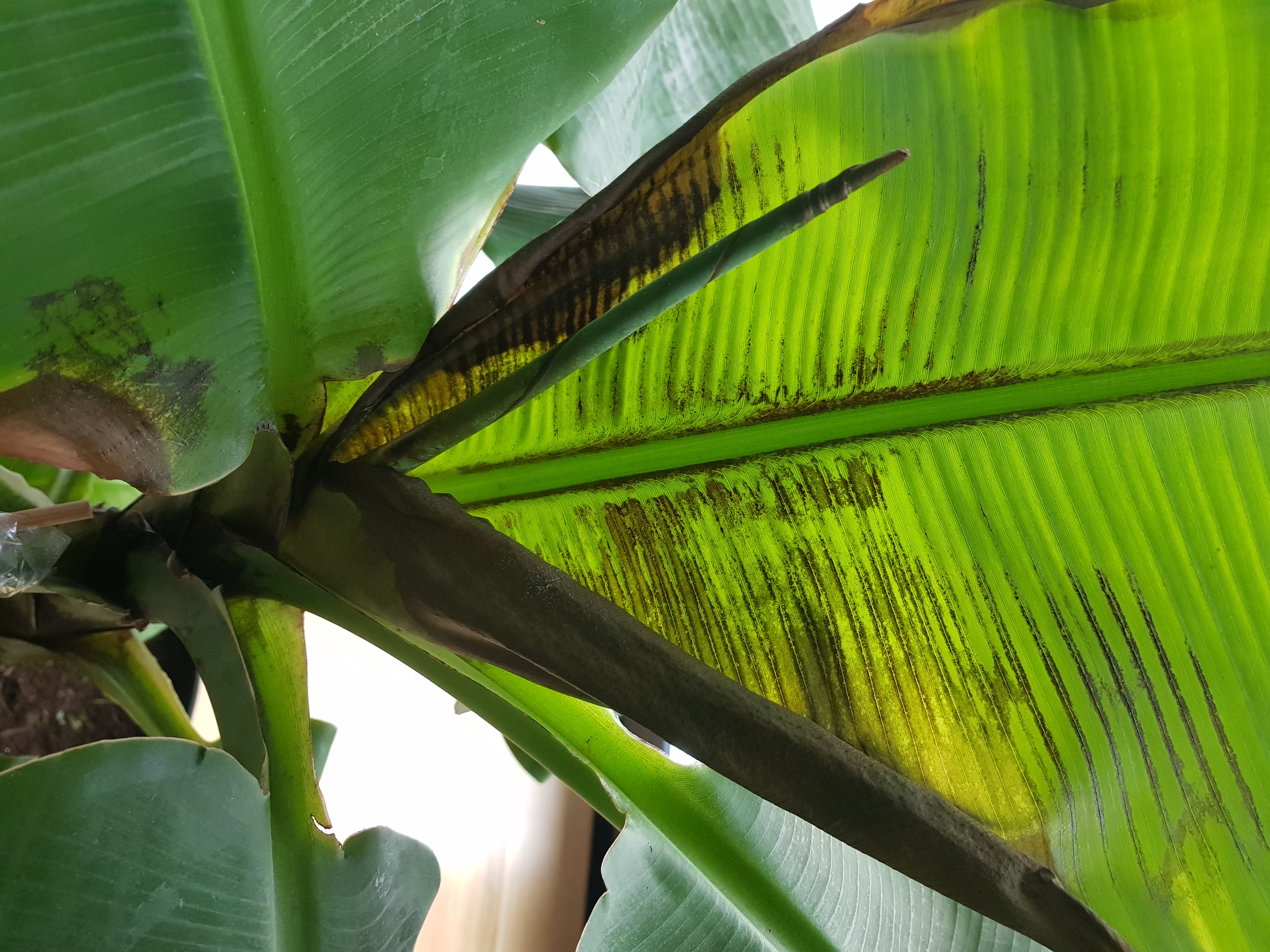 Ist mein erster Versuch mit Zwergbananen und bisher lief alles gut. Jedoch ist das neueste Blatt meiner Zwergbanane dabei sich braun zu verfärben, mit weißen Punkten an den braunen Stellen. Was mich wundert, da die übrigen Blätter soweit gut aussehen.