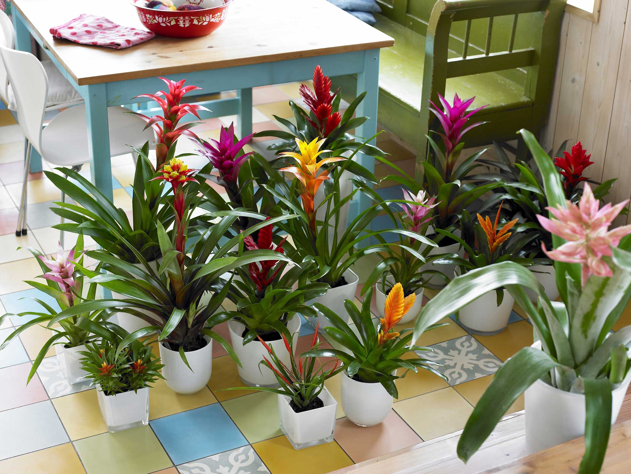 Schokolade naschen, sich zu Hause einigeln, schlafen: Im Winter sinken bei den meisten Menschen typischerweise Energie und Antrieb ebenso, wie die Lust auf Süßes und das Schlafbedürfnis steigen. Alle haben es auf Körper und Gemüt abgesehen: Dunkelheit, Kälte, Nässe und zu allem Überfluss noch Viren und Bakterien! Wie gut, dass wenigstens viele Festtage den strengen Winter etwas abmildern. Nach Advent, Nikolaus und Weihnachten folgen zum Jahreswechsel Silvester, Neujahr und der Valentinstag, bis schließlich die Dämonen und Geister des Winters mit der ausgelassenen Karnevalszeit endgültig vertrieben werden. Also auf in´s Getümmel, denn gerade im Winter tut Geselligkeit gut! Dazu alles, was hell und bunt ist: Einige farbstarke Zimmerpflanzen als Wohnbegleiter wirken für eine gute Laune wahre Wunder. Natürlich entfalten sie ihre Heiterkeit auch als Mitbringsel! So wie die vielen Sorten der Bromelie: Sie halten jedem Anflug von Trübsal selbstbewusst ihr kraftvolles Rot, zartes Rosa, frisches Gelb, klares Weiß, fröhliches Orange oder geheimnisvolles Violett entgegen. Besonders interessant sehen die zweifarbigen Sorten aus, die neben anderen neuen Hybriden das Ergebnis jahrelanger Züchtungsarbeiten sind.