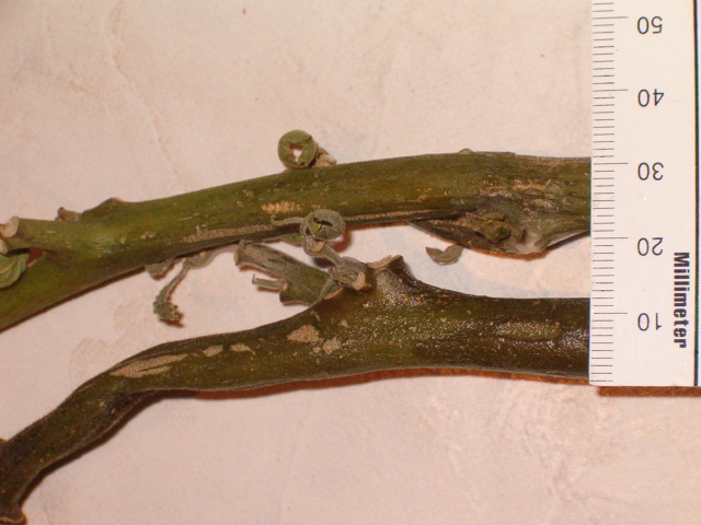 Sollte die Pflanze im Winterquartier helle Blätter oder sogar Triebe gebildet haben, so sollte man diese beim ausräumen unbedingt entfernen! Sie würden nur verbrennen und/oder abknicken und das hätte einen Wachstumsstop zur Folge.
