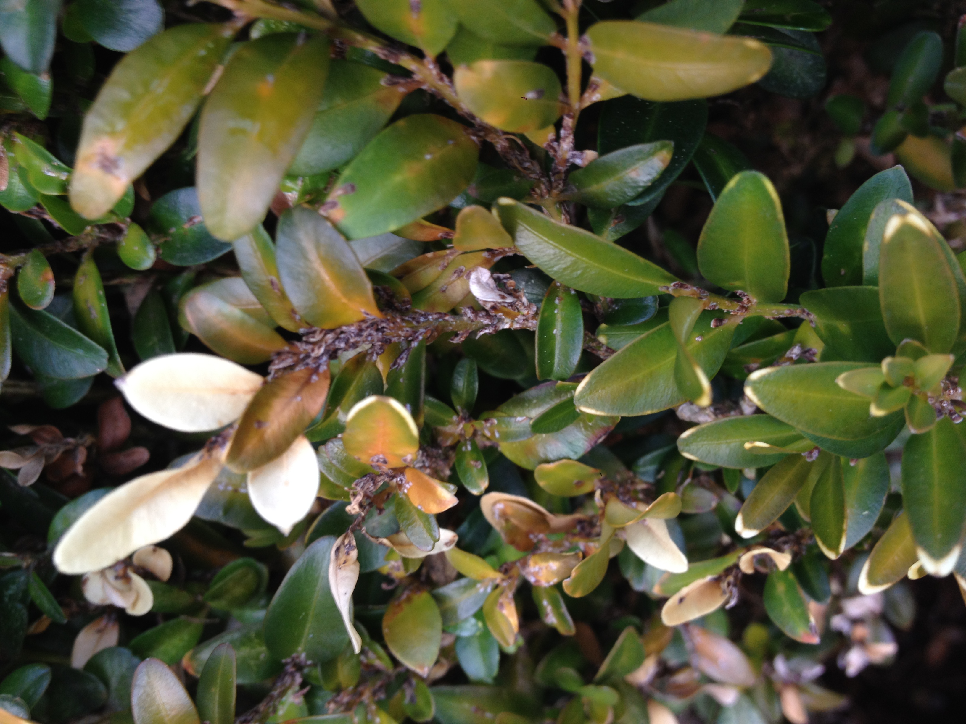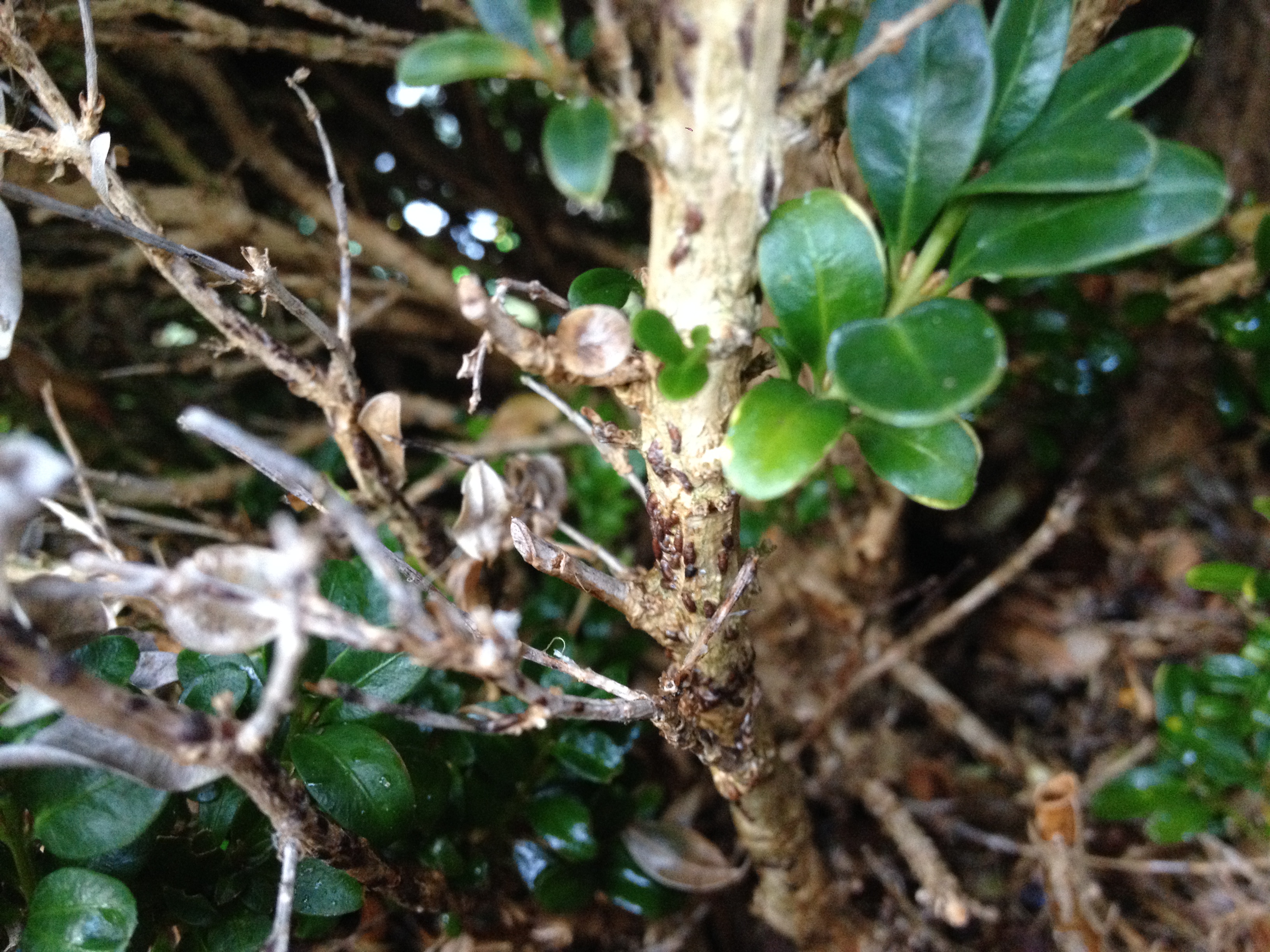 Jetzt meine Frage: ist der Buchs mit irgendwas befallen? Ich habe diese merkwürdigen dunklen "Hubbel" gesehen.