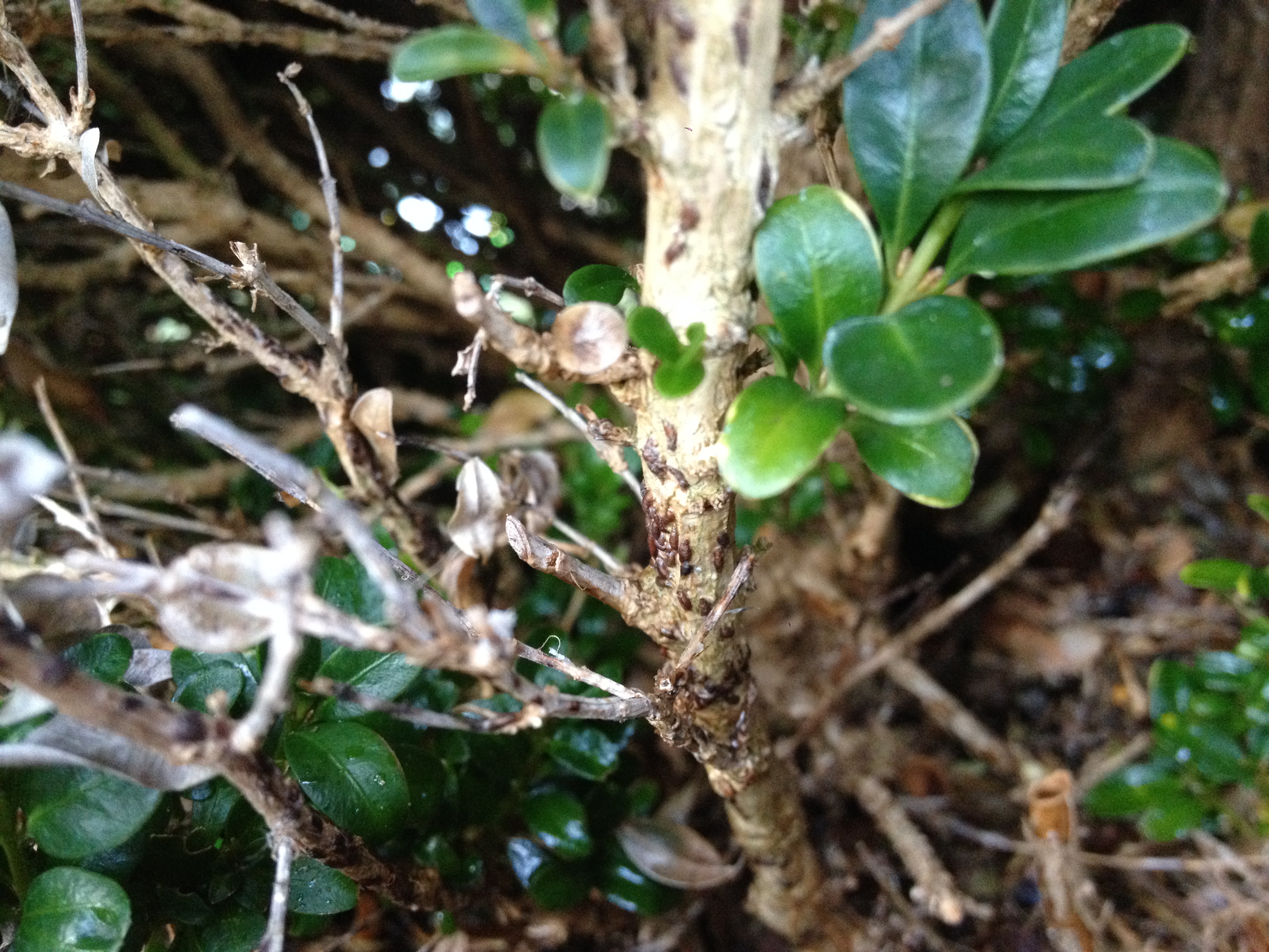 Jetzt meine Frage: ist der Buchs mit irgendwas befallen? Ich habe diese merkwürdigen dunklen "Hubbel" gesehen.