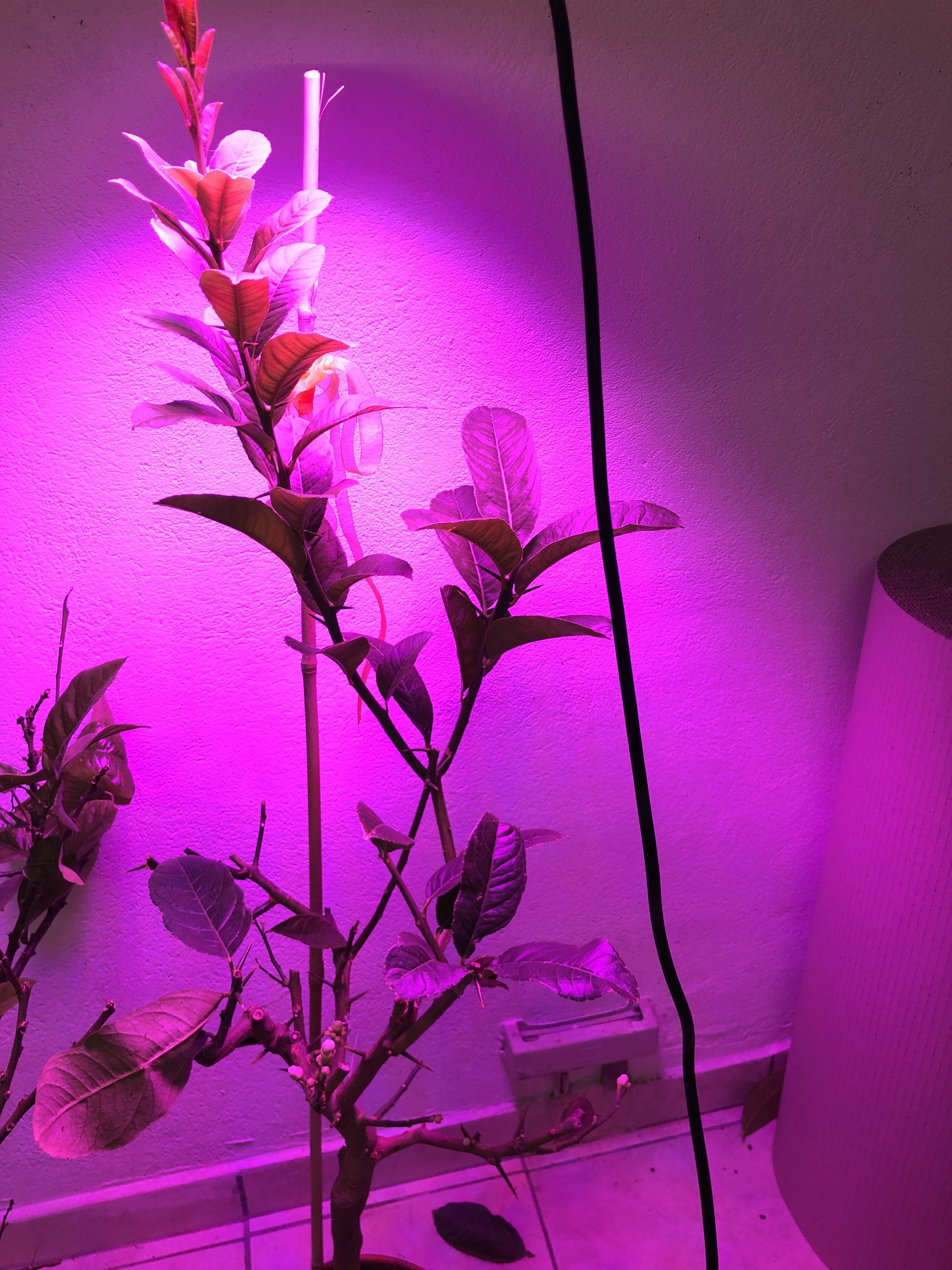 Wir haben Sie über den Winter in den Heizungskeller (um die 18-20°C) gestellt und mit einer Pflanzenlampe wird sie 8 Stunden pro Tag bestrahlt. Auch wird sie regelmäßig gewässert.