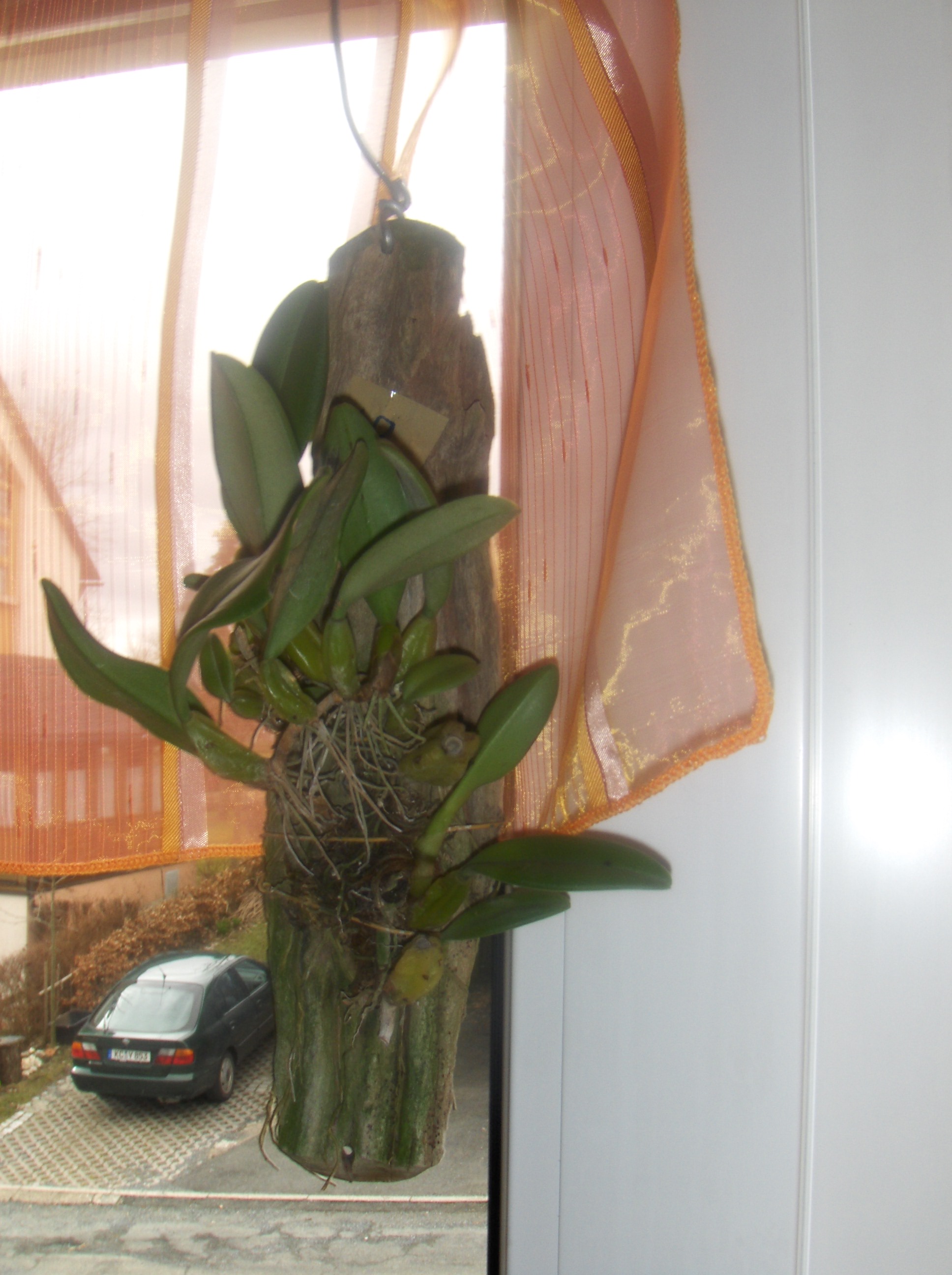 Umtopfen: Bulbophyllum fascinator mag ein feines Substart. Bei hoher Luftfeuchtigkeit kann man sie auch aufgebunden auf ein Stück Holz kultivieren.