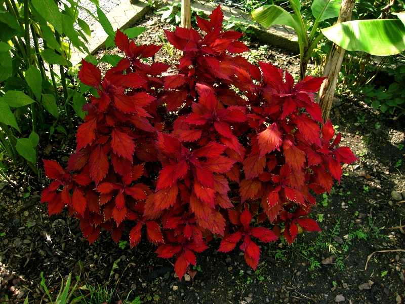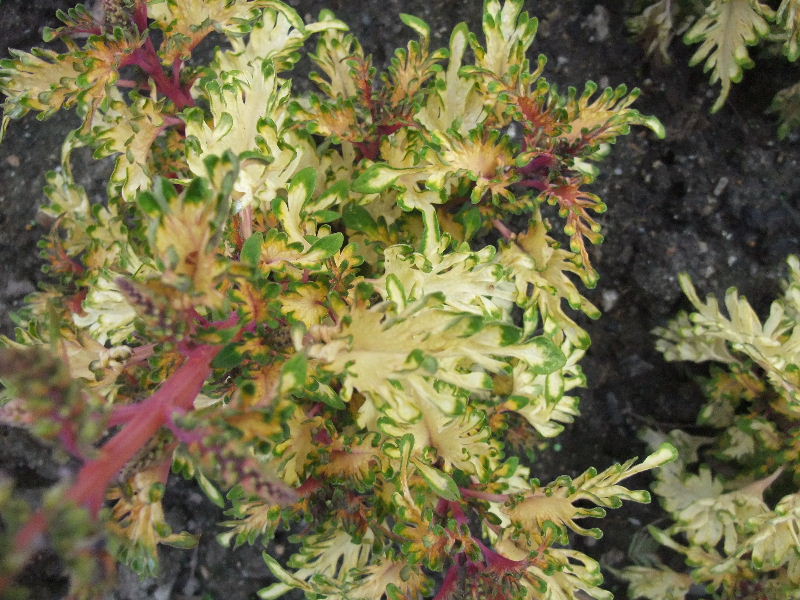 Vielleicht weiß ja sogar jemand hier, welche Sorte das sein könnte? Die zwei linken sind von Mutter X, die rechte von Mutter Y, aber X und Y sind damals beide von der gleichen Mutter geschnitten worden. Man sieht, dass die rechte vorher in der Sonne stand. Da werden die Blätter dann komplett rot bis lila. Die beiden linken waren im Halbschatten. Und die Nahaufnahme ist auch von der rechten Pflanze, um zu zeigen, was seit dem passiert ist...