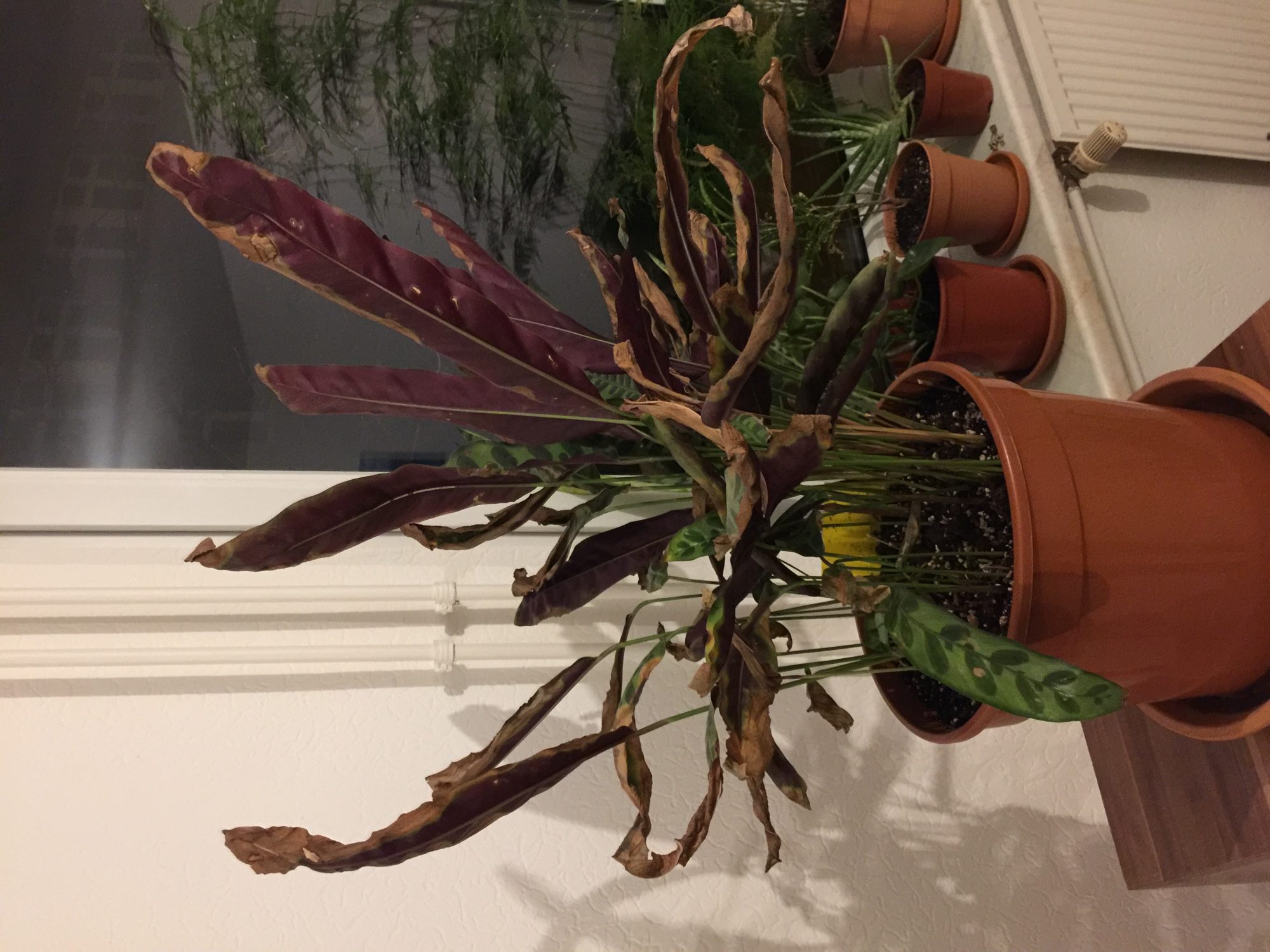 Habe diese Calathea seit etwa 5 Jahren und seit einem Umzug Anfang 2019 ging es ihr nicht mehr ganz so gut, wohl auf Grund dessen, dass ihr Standort nicht mehr so gut war und hat dann mehr und mehr braune Stellen bekommen. Ich habe dann immer wieder die schlimmsten Blätter abgeschnitten.