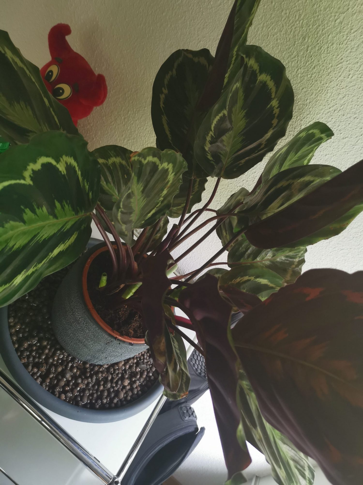 Ich dachte, dies passiert hier als Zimmerpflanze nie. Haben sie vor ca. 3 Monaten in einem Gartencenter gekauft. Sie steht etwa 1m von einem Ostfenster entfernt und ich hab mir GrüneVronis Tipp zu Herzen genommen mit den Blähtonkügelchen in einem grossen Untersetzer .