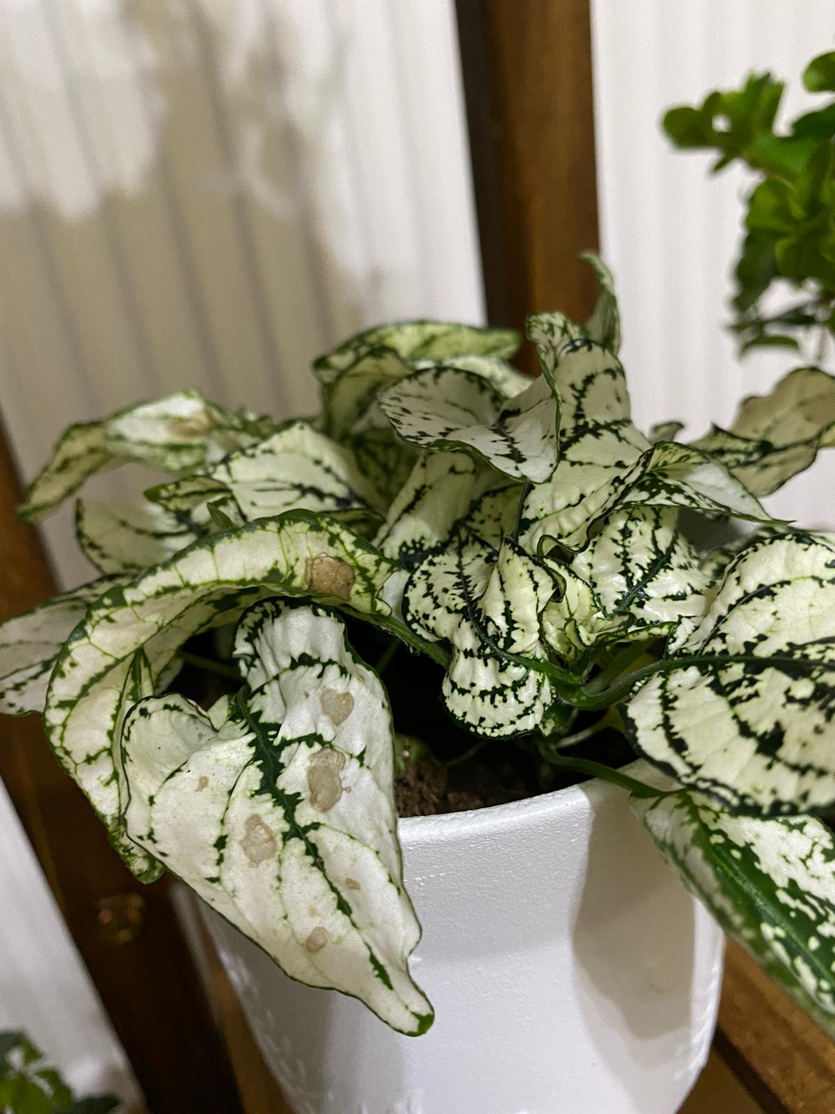 ich meld mich jetzt doch mal, wegen den 2 neuen Pflanzen, die ich geschenkt bekommen habe. Die Calathea hat so Flecken auf einigen Blätter, ist das normal? Es hätte mich wenig beunruhigt wenn das Caladium nicht auch Flecken hätte, hier sind sie aber sehr hellbraun. Ist alles gut oder muss ich irgendetwas machen?