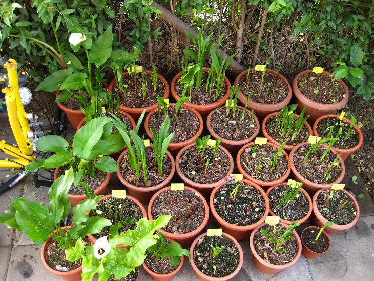 Auch dieses Jahr sind wieder neue dazugekommen. Eine Z. albomaculata und eine Cameo. Die Cameo gabs im Hornbach im Angebot. Das sind zwei riesige Knollen, Durchmesser min. 10 cm und eine kleine Knolle war auch noch mit. Das ganze für knapp 4 €.