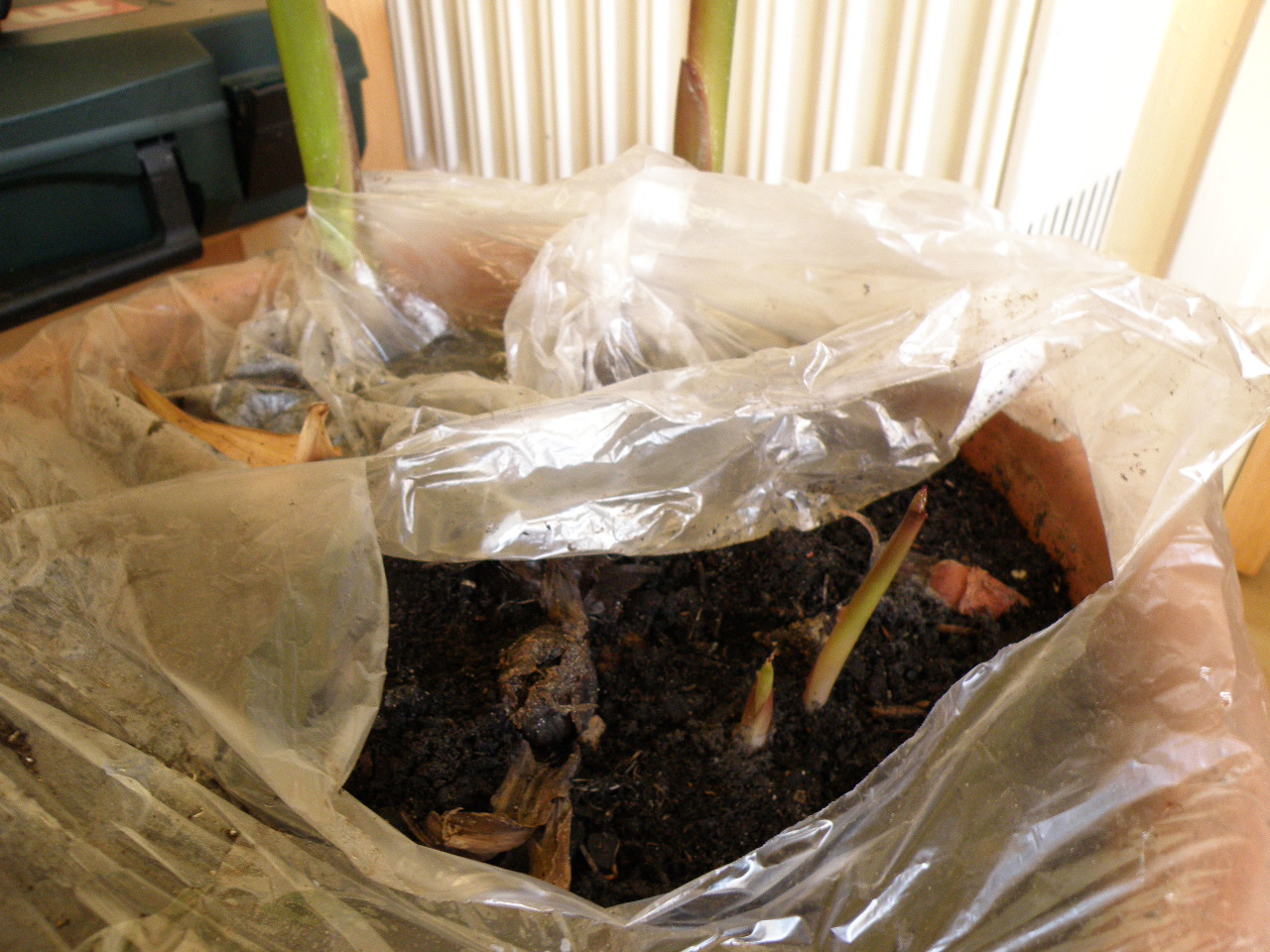 Hier mal was zum Mut machen. Meine Knolle treibt fleißig aus.