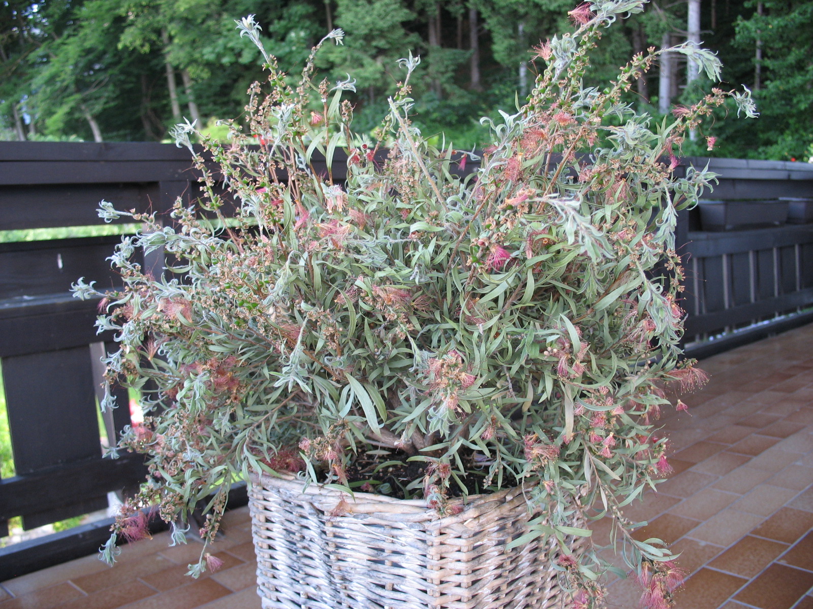 im Mai bekamen wir eine Callistemon zum Geschenk, kannten diese Pflanze bisher nicht. Ich hielt mich genau an die Beschreibung auf dem beiliegenden Sticker und stellte den Topf auf einen sonnigen Platz am Balkon. Obwohl ich regelmäßig wässerte ging die Blütenpracht bald verloren und jetzt sind auch die Blätter komplett vertrocknet - ist das normal ??? (s.Bild)