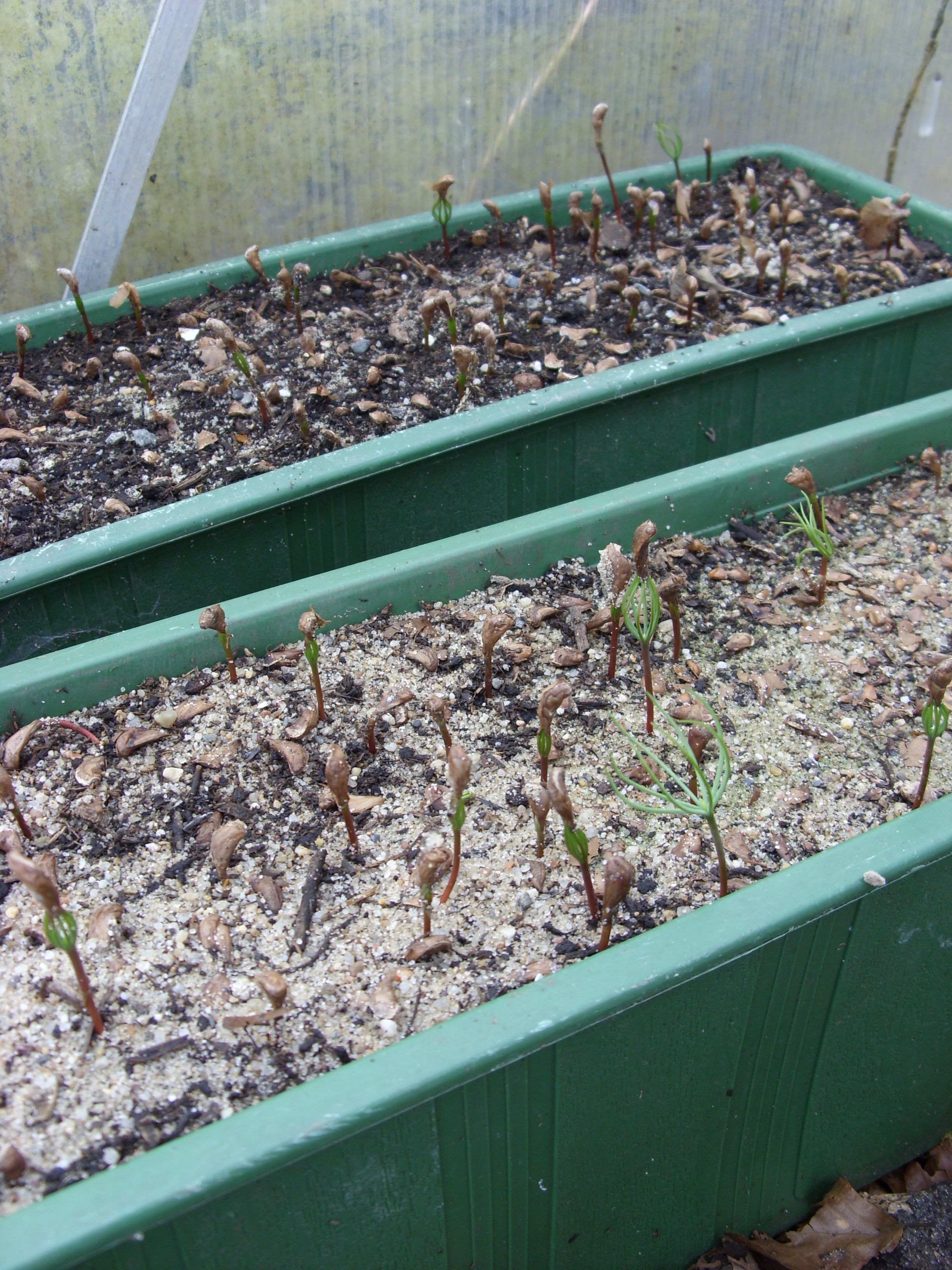 habe gerade ein paar Fotos von meinen jungen Libanonzedern gemacht. Die Samen wurde alle in einem Botanischen Garten gesammelt und bei mir ausgesät. Sie keimen wirklich sehr langsam aber sie keimen und brauchen sehr tiefe Aussaatgefäße, da sie sehr tiefe Wurzeln bilden.