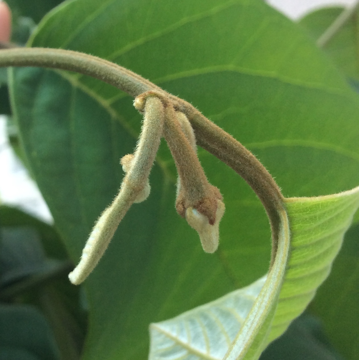Sieht echt brutal aus und war auch hart, die vielen Blüten(knospen) zu entsorgen. Aber so wird die Chirimoya hoffentlich wieder das eine oder andere Jahr mit einem einfachen Fensterstandplatz im Winter zurechtkommen – ohne künstliche Beleuchtung, weil sie sonst über Fensterhöhe in ständiger Dunkelheit vor sich hin serbeln würde.