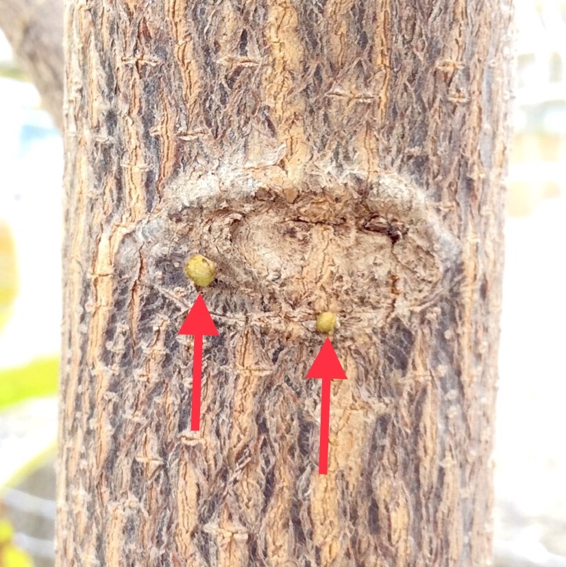 Sieht echt brutal aus und war auch hart, die vielen Blüten(knospen) zu entsorgen. Aber so wird die Chirimoya hoffentlich wieder das eine oder andere Jahr mit einem einfachen Fensterstandplatz im Winter zurechtkommen – ohne künstliche Beleuchtung, weil sie sonst über Fensterhöhe in ständiger Dunkelheit vor sich hin serbeln würde.