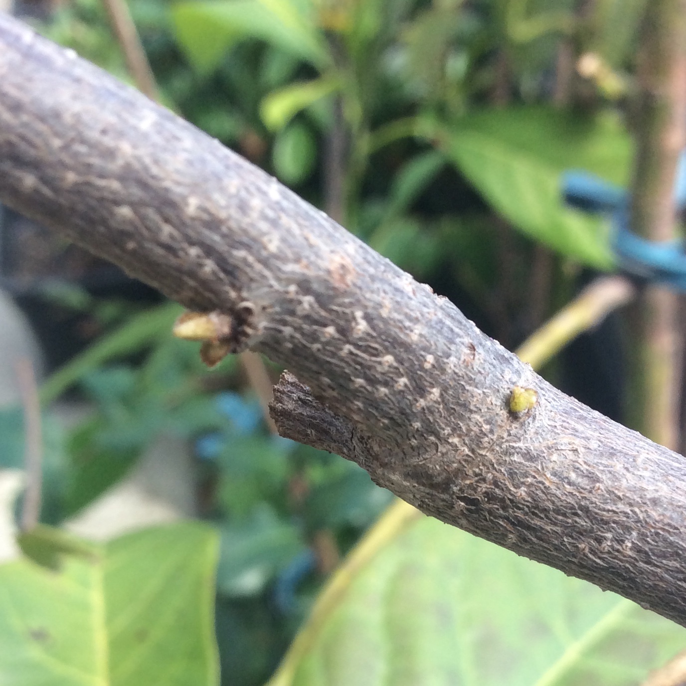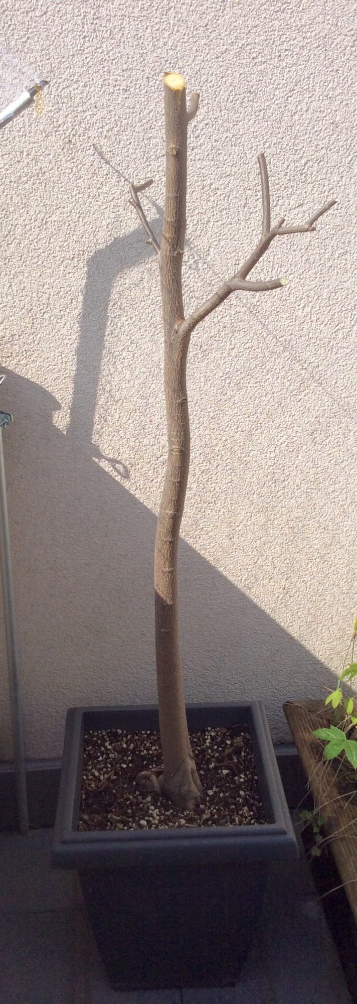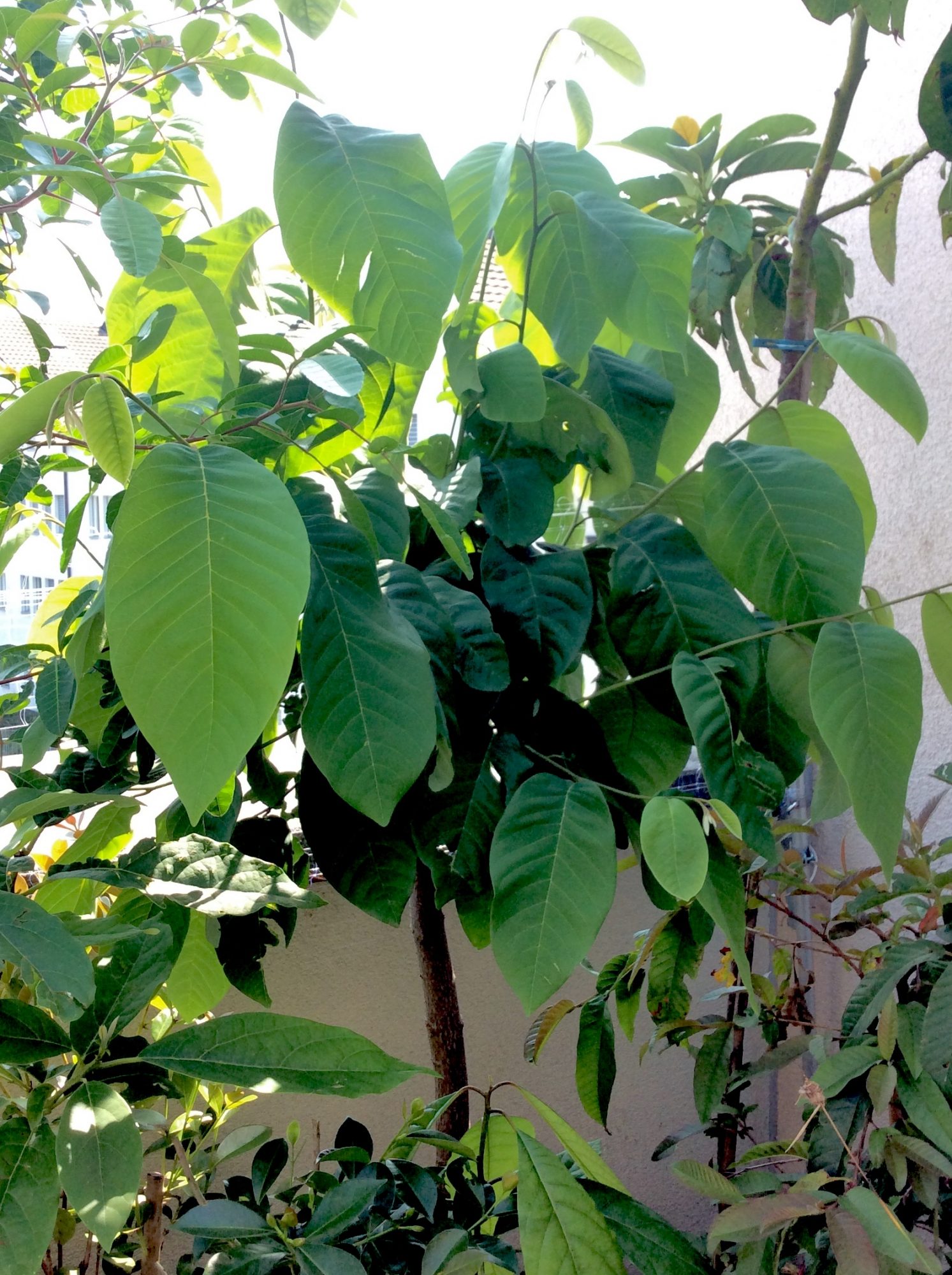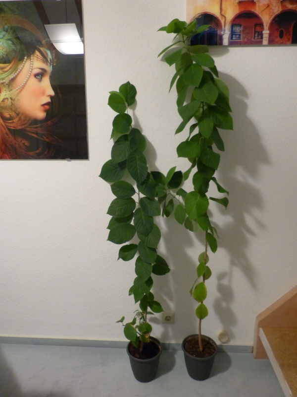 Sieht echt brutal aus und war auch hart, die vielen Blüten(knospen) zu entsorgen. Aber so wird die Chirimoya hoffentlich wieder das eine oder andere Jahr mit einem einfachen Fensterstandplatz im Winter zurechtkommen – ohne künstliche Beleuchtung, weil sie sonst über Fensterhöhe in ständiger Dunkelheit vor sich hin serbeln würde.