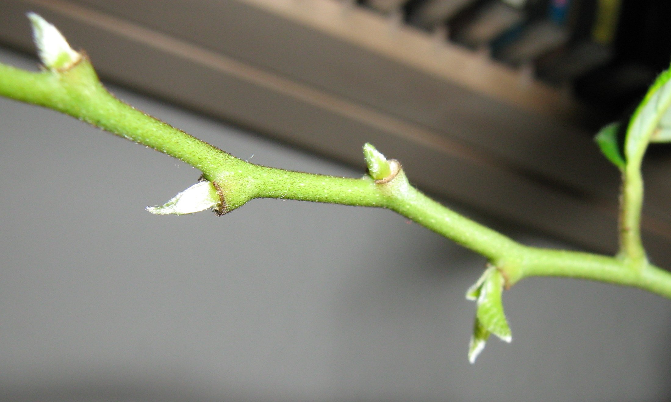 Nachdem ich sie ins Wohnzimmer gestellt hatte, änderte sich erst mal nichts, Temperaturen von 19 bis 20 Grad schienen kein Problem zu sein. Aber heute Morgen spielten sie plötzlich Herbst, jede Menge Blätter musste ich aufkehren. Die sehen teilweise sehr gesund aus, die Blätter, wurden aber nichtsdestoweniger abgeworfen. Muss dazu sagen, dass mein Wohnzimmer bei so viel Sonne wie heute gut warm wird, inzwischen hab ich da - wie gestern - über 21 Grad.