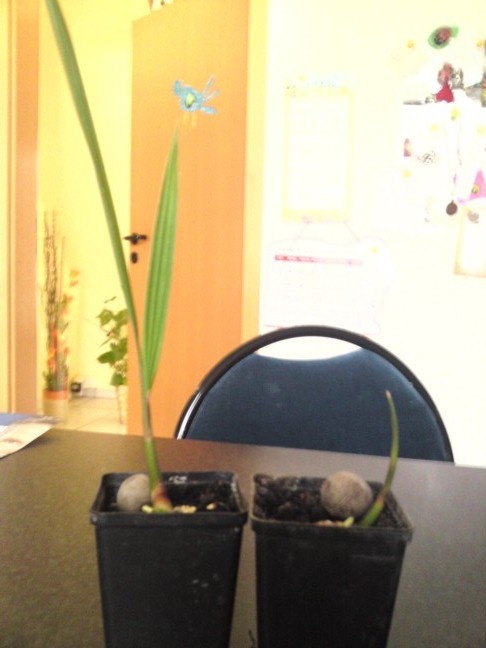 Eine süße kleine Honigpalme guckt seit heute, nach 5 Monaten, aus der Erde raus. Ich hab ja schon gar nicht mehr dran geglaubt!