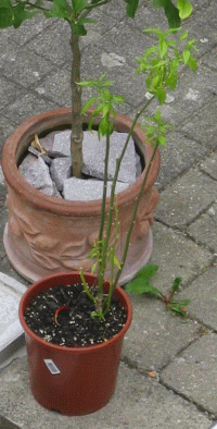 Und dann ging es los... jetzt die sind voll mit Früchten und Blüten und teilweise über 1m groß....