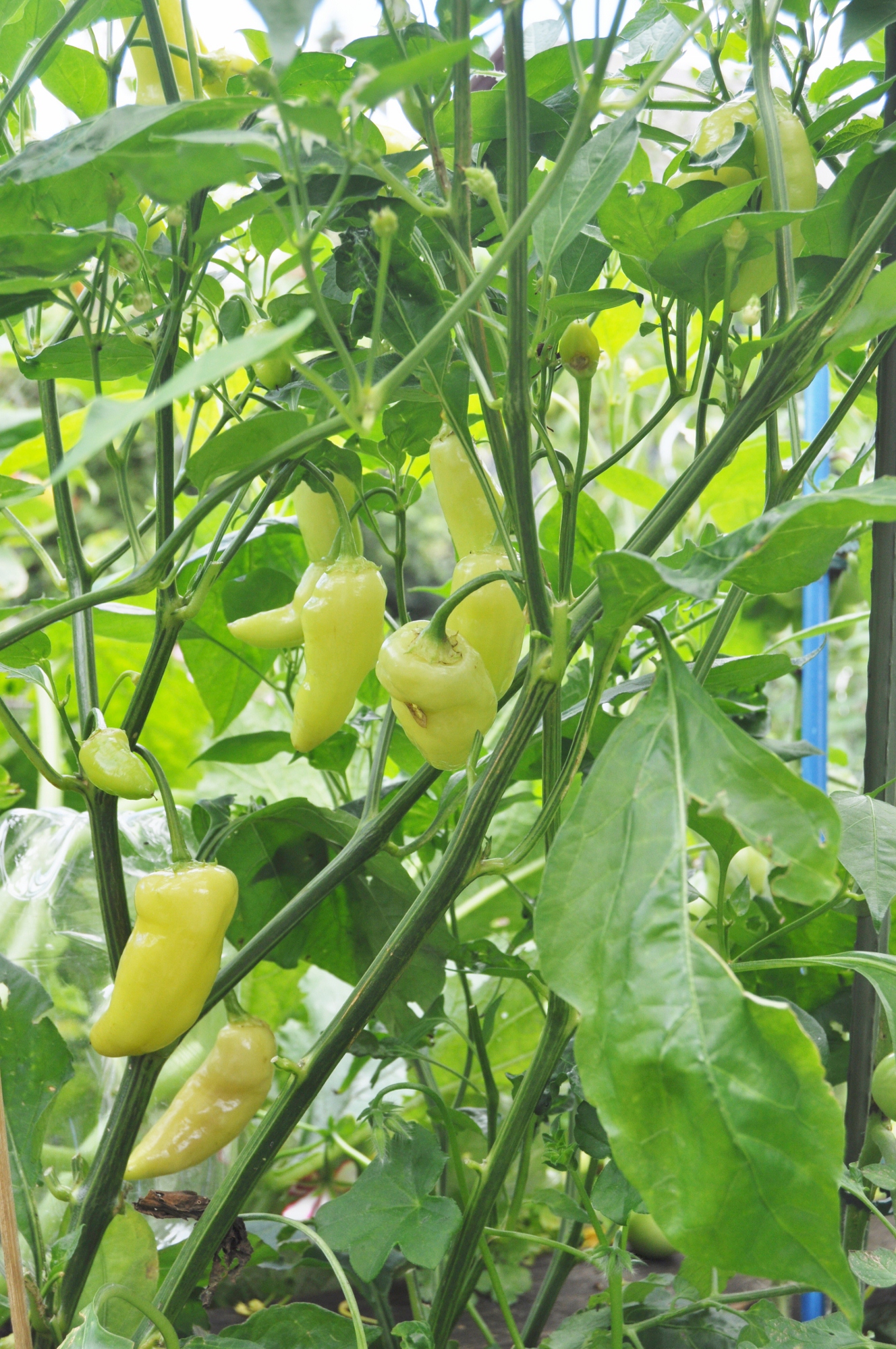 Eine von den falsch beschrifteten/total verkreuzten Bhuts muss ich mal probieren, die schaut aus wie eine Mischung aus Lemon Drop (Habitus der Pflanze, Blüten) und so einer ungarischen Paprika Sind zwar noch grün, aber die sehen schon aus, als könnte man sie