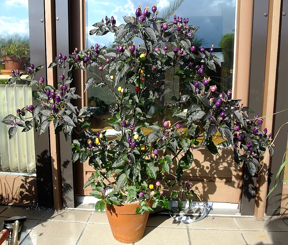Sagt mal, andere Frage am Rande - sind bei euch auch die Wespen so extrem in den Chilis unterwegs? Und zwar nicht als Bestäuber - bei mir fliegen die immer nur drumrum, setzen sich mal drauf und fliegen wieder weg. Mir ist es schon zweimal passiert, dass ich beim Ernten eine Wespe auf der Hand hatte, die ganz tief in den Blättern versteckt saß. Und gestern hab ich mal ausgeputzt, da musste ich alle 5 Minuten ins Haus flüchten, weil mehrere Wespen kamen, Runden über den Balkon geflogen sind und dann wieder verschwanden - um ein paar Minuten später wieder zu kommen und das gleiche wieder zu tun. Ich bin doch so allergisch Ich trau mich net mehr raus... Im Garten hab ich die nicht, die kommen nur zu den Chilis hoch...