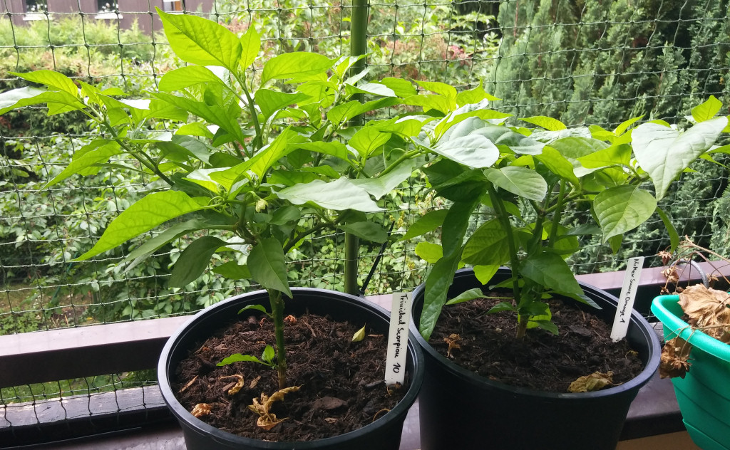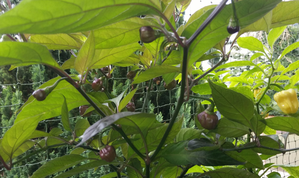 vermutlich werd ich mich wohl nächstes Jahr nochmal damit versuchen müssen. Peter Pepper hat immer noch genau 1 Chili dran hängen.. ist heuer wieder zickig und wirft die Blüten lieber ab. Werd sie mal an die Ecke stellen, für noch mehr Sonne. Die Habanero lassen sich auch richtig Zeit, aber immerhin sind Früchte dran. Die ersten sind irgendwie verkümmert, die sind ganz klein geblieben und lohnen sich nicht zu ernten. Die Bolivian Rainbow sind dagegen voll mit Früchten und Blüten, die ich aber tatsächlich gar nicht ernte. Ich hab die kleinen, bunten Früchte lieber fürs Auge. Die Pflänzchen sind halt auch echt hübsch.