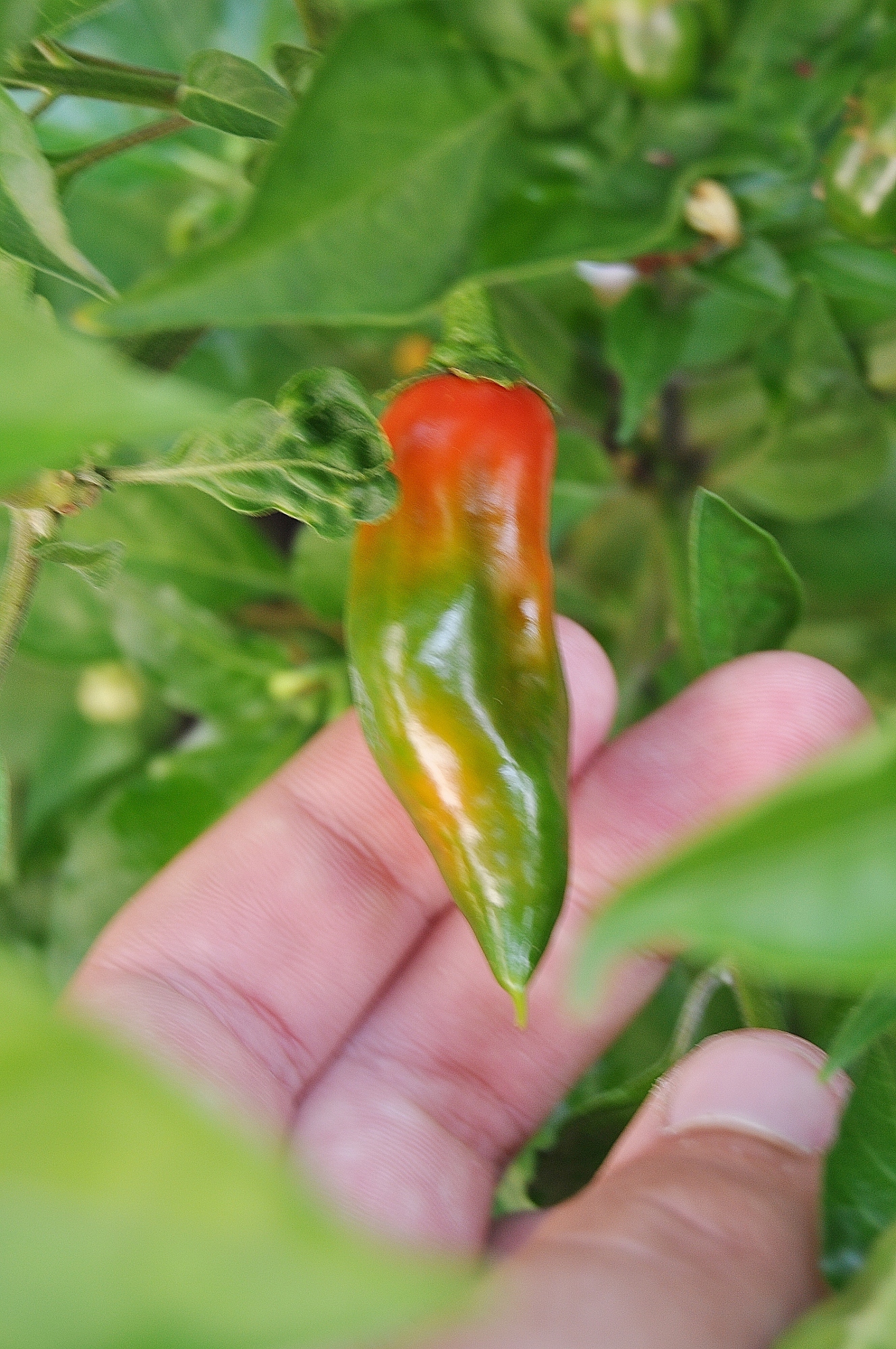 Wie angekündigt hab ich heute die erste Frucht an der Hab.-Bhut-wasauchimmer geerntet und sie war echt superscharf Hab vielleicht ein 5x5mm Stück ohne Kerne und Gewebe um die Kerne probiert und mein Mund hat eine Viertelstund lang gebrannt, trotz Brot Die Frucht ist so klein, dass man in Versuchung kommt, einfach genüsslich reinzubeißen, aber dann hilft auch die Rettung nicht mehr - vielleicht sollten wir die nächste unserem Nachbarn schenken