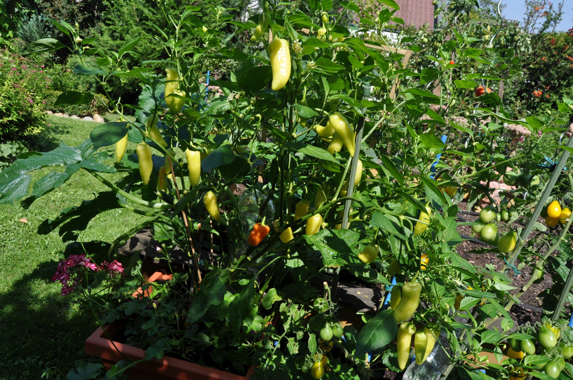 Liegt aber vielleicht auch daran, dass ich nicht so viel scharf esse und letztes Jahr nur die weniger scharfen Chilis mal probiert habe. Naja, die anderen reifen auch ziemlich schnell ab, bis zum Wochenende hab ich schon noch einen Referenzwert...