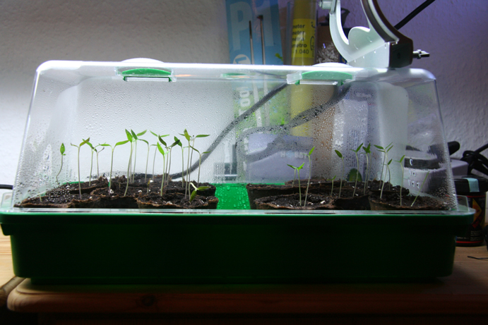 Meine sind ganz ohne Anzuchtkasten gewachsen, nur zum Keimen hatte ich eine Folie drüber.