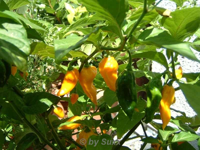 Ich habe Mini-Chilis aus dem Supermarkt, keine Ahnung wie die genau heißen. 3 große Pflanzen, deren erste Früchte rot sind. Werde in den nächsten Wochen reichlich ernten können