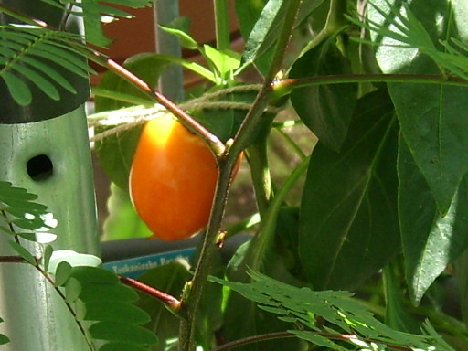 @Wollschweber: Geduld, Geduld, es wird. Die lassen sich halt ihre Zeit, aber unreif essen is ja bei den meisten auch nix. Meine reifen Cayenne und Habanero sind überwinterte, bis auf die Schoten, die man auf dem einen Balkon-Übersichtsbild sieht. Das ist eine Cayenne von diesem Jahr.