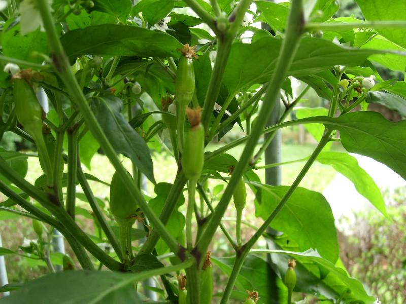 Generell bin ich eigentlich sehr zufrieden, ich hab an fast allen Pflanzen bereits Früchte. Nur ein paar Habaneros (Sorte unbekannt) zieren sich, aber die leiden auch am meisten unter den Blattläusen, muss man klar sagen.