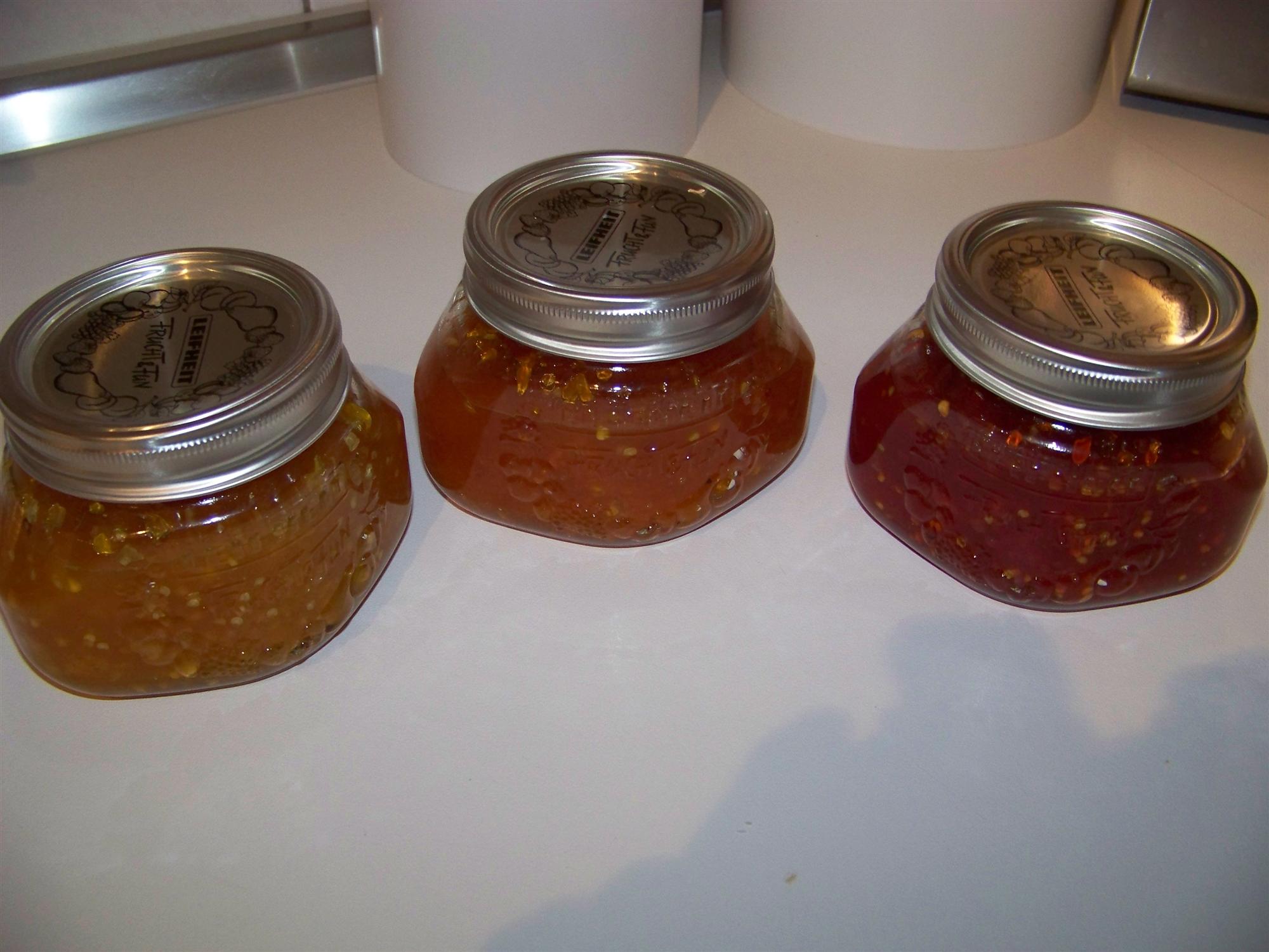 Mitte: Hot Thai Sauce aus 1 orangenem Paprika und 12 Habanero orange !!! extra Hot !!!
