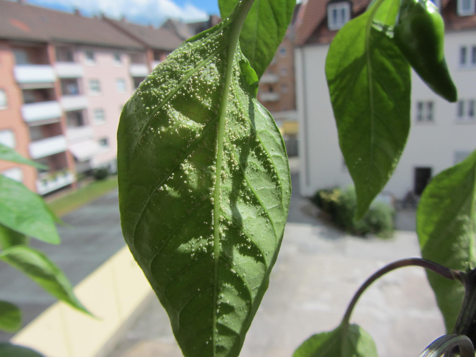 Meine Chilipflanze weist Veränderungen an der Blattunterseite auf! Kann mir jemand mitteilen, um was es sich handelt und wie ich reagieren sollte!