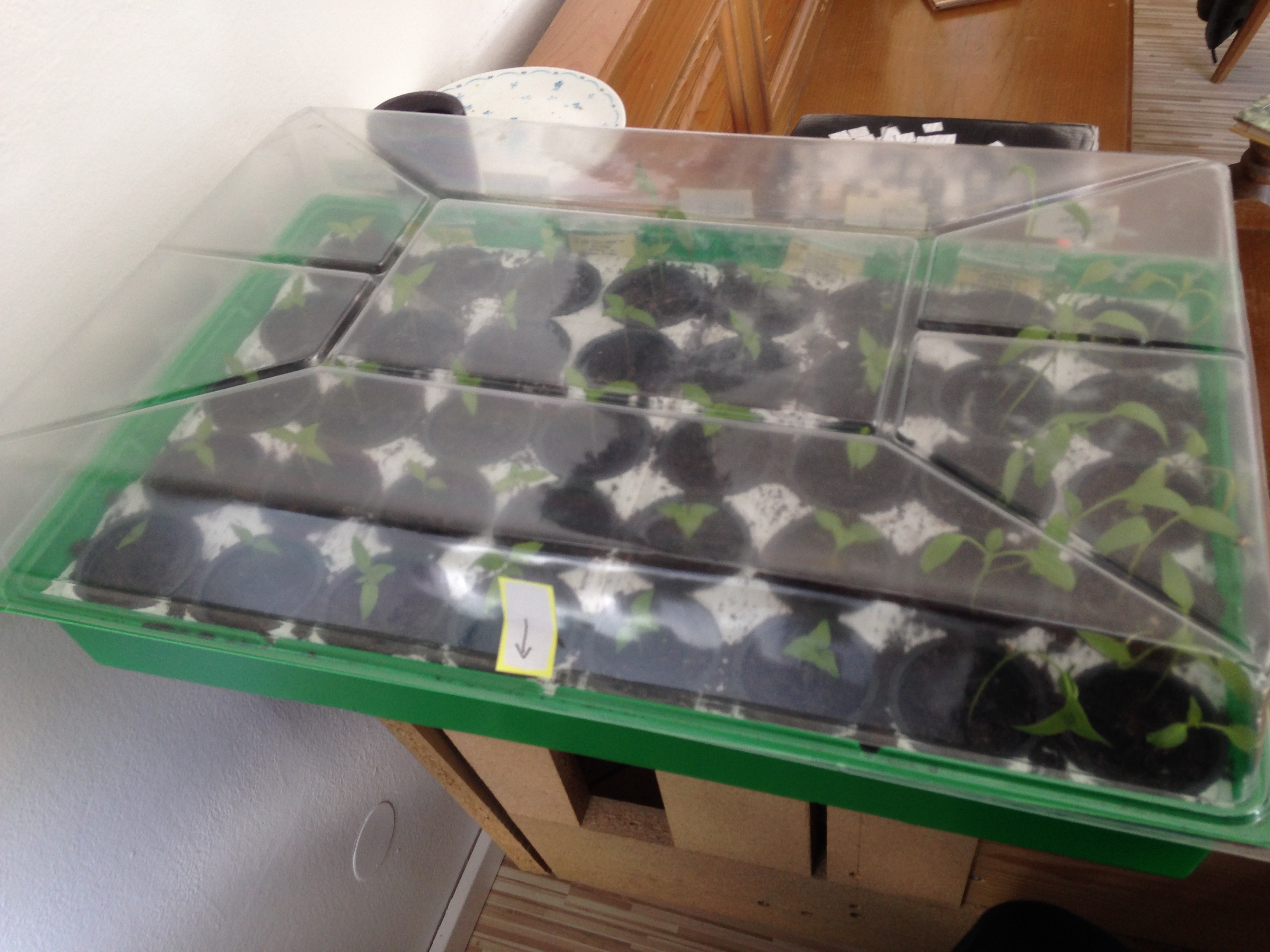 die sehen nicht schlech aus - vielleicht ein klein wenig vergeilt (d.h. sie haben etwas zu wenig Licht). Stell sie direkt ans Fenster, damit sie so viel Sonne abbekommen wie nur möglich. Den Deckel kannst Du zeitweise abnehmen (zunächst stundenweise, dann z.B. den ganzen Tag und nur noch nachts zudecken), dadurch kommt auch mehr Licht an die Pflänzchen. Und sobald sie ihr zweites richtiges Blattpaar bekommen, kannst Du sie in leicht vorgedüngte Erde umtopfen.