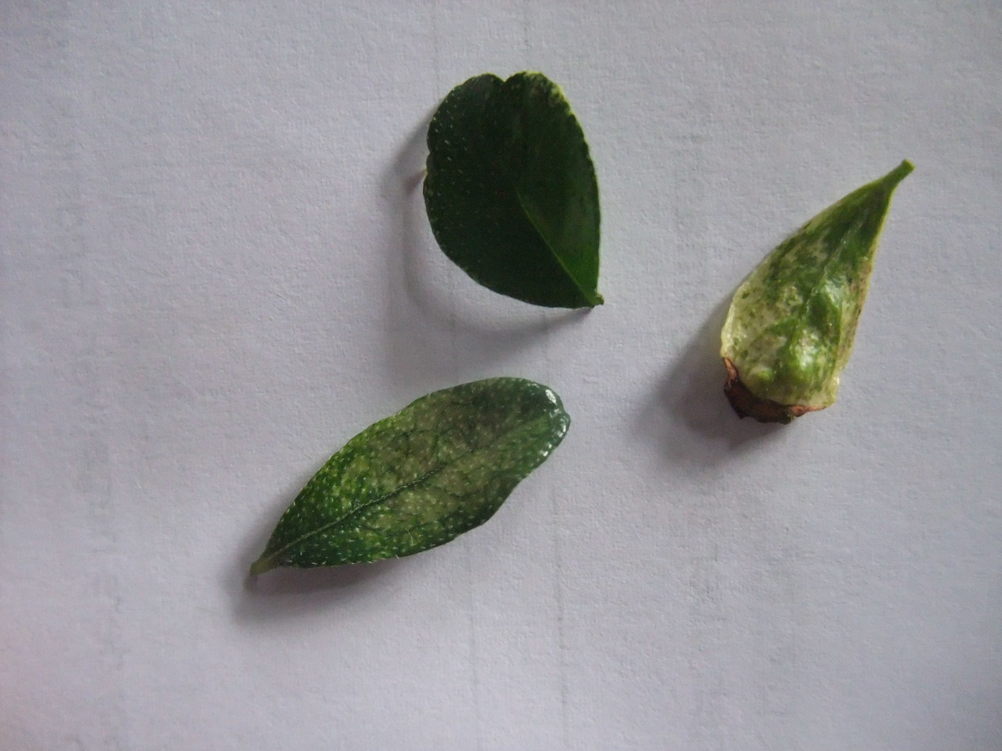 Die Blätter sind teilweise grüngelb und teilweise grün.