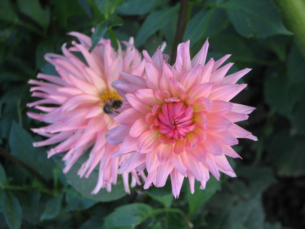 Die rosafarbene Blüte ist eindeutig eine Dahlie, sieht man auch am Blattwerk. Das ist keine Chrysantheme!