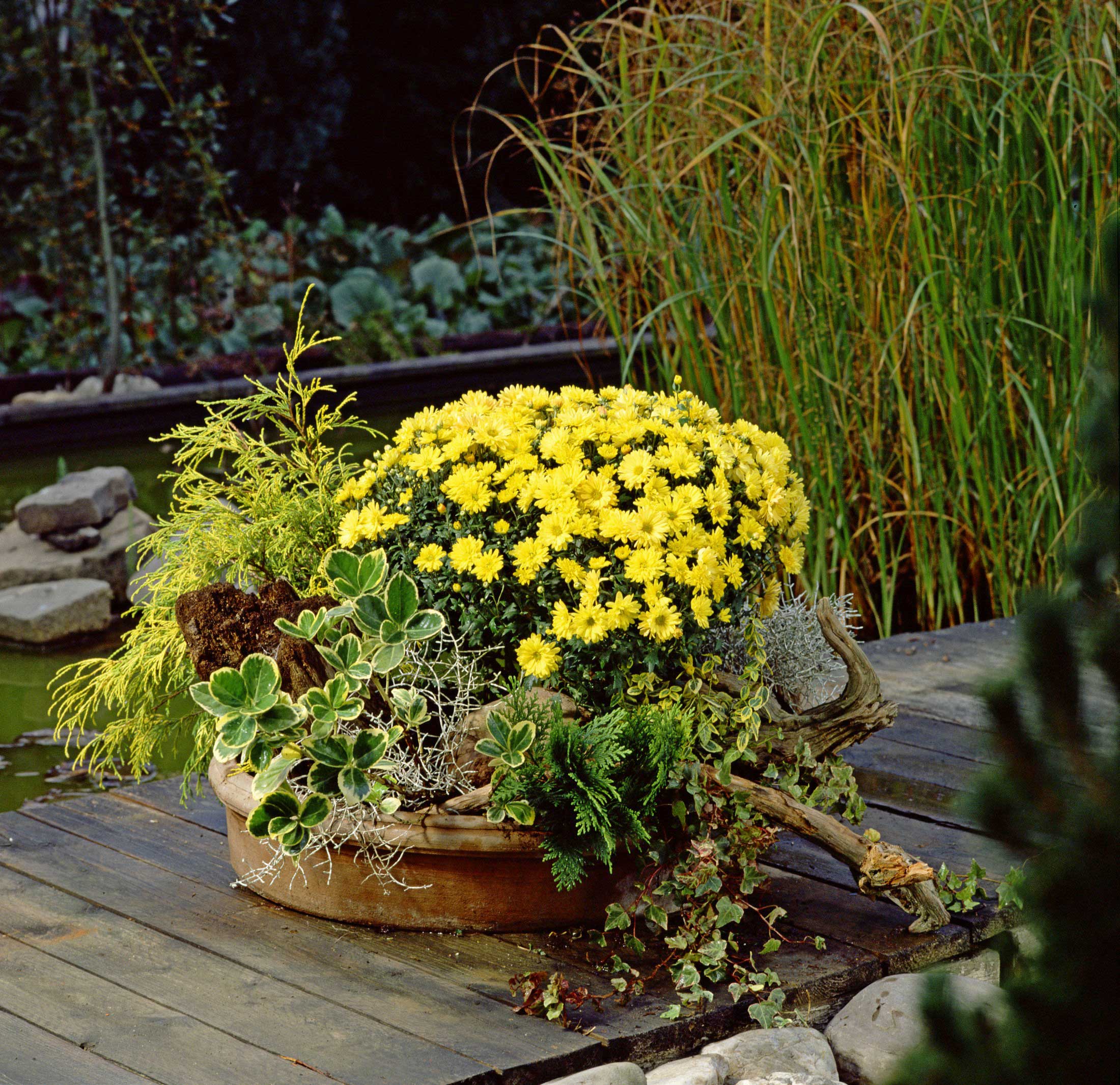 Damals wie heute ist die Verwendung der Chrysanthemen sehr vielfältig: Als Gartenblumen erfreuen sie das Auge, sie wachsen in Töpfen heran und schmücken Blumenfenster, Balkons und Blumenständer. Als haltbare Schnittblumen sind sie für Vasen und Bouquets gefragt. Besonderer Wertschätzung erfreuen sich die dekorativen Chrysanthemen mit ihren dicken ballförmigen Köpfen. Wer in den 1950er und 1960er Jahren ?en vogue? sein wollte, brachte zwei bis drei Stängel der teuren Riesenblüten zur besonderen Einladung mit. Aber auf dem Weg dorthin fasste man sie am besten mit Samthandschuhen an, denn auf Erschütterung konnten die Blütenblätter mit Rieseln reagieren. Bei den heutigen Sorten tritt das zum Glück nicht mehr auf. Kein Wunder, dass die mächtigen Köpfe von 'Yellow May Shoesmith', 'Palisade', 'Cassandra' und vielen anderen wieder gefragt sind.