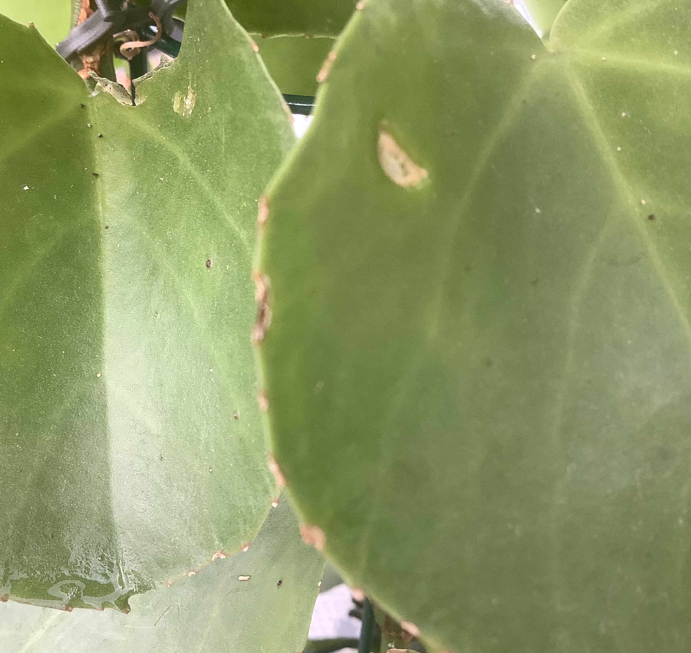 ich habe mir gestern eine Cissus Rotundfolia gekauft und habe wahrscheinlich einen typischen Anfängerfehler gemacht. Ich habe mich so von der Pflanze beeindrucken lassen, dass ich sie gekauft habe, ohne sie großartig in Augenschein zu nehmen. Heute habe ich dann auf vielen Blättern kleine schwarze Pünktchen entdecken können. Wenn ich mit den Fingern daruber streife, bemerke ich das die Pünktchen erhaben sind. Sie lassen sich nicht wegwischen und stecken zumindest zum Teil im Blatt. Ich hoffe ihr habt einen Tipp was das sein könnte und wie ich den vermeindlichen Schädling bekämpfen kann, möglichst ohne chemische Keule.