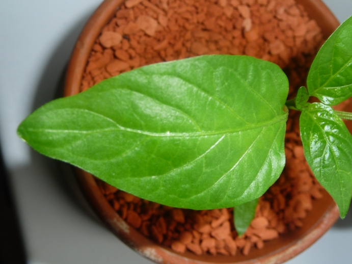 hab extra nochmal in der Erde gepult, weil ich 3 Kerne drin hatte und nur zwei gekommen sind und den Kern, den ich gefunden habe, war eindeutig zu groß für Paprika/Chili-Kern...
